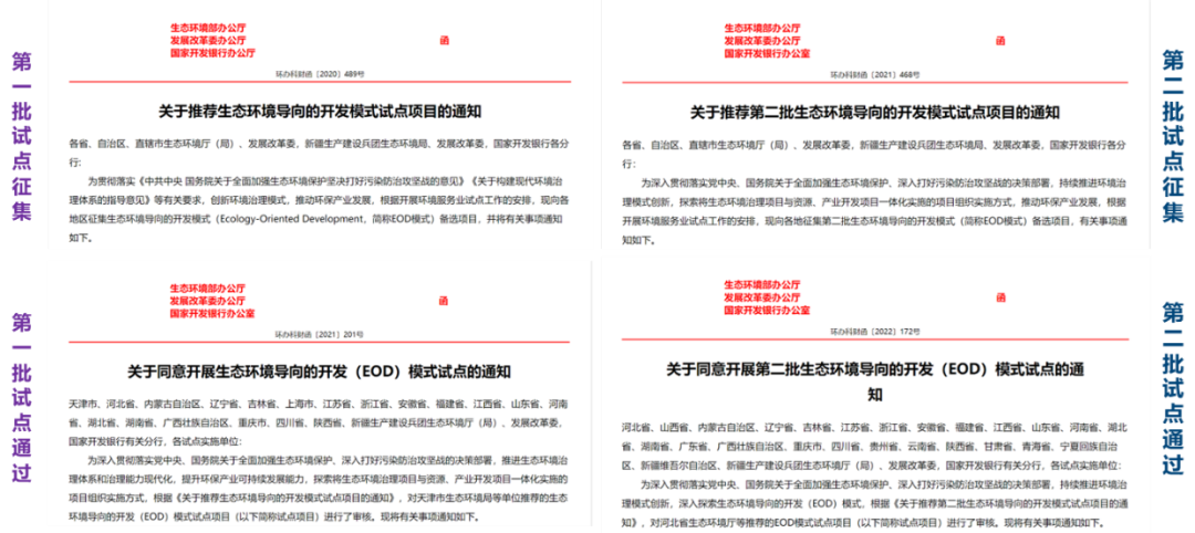 2021年,生態(tài)環(huán)境部批復了第一批36個試點項目,2022年又批復了58個試點項目,接下來,EOD模式試點項目將進入常態(tài)化申報階段。