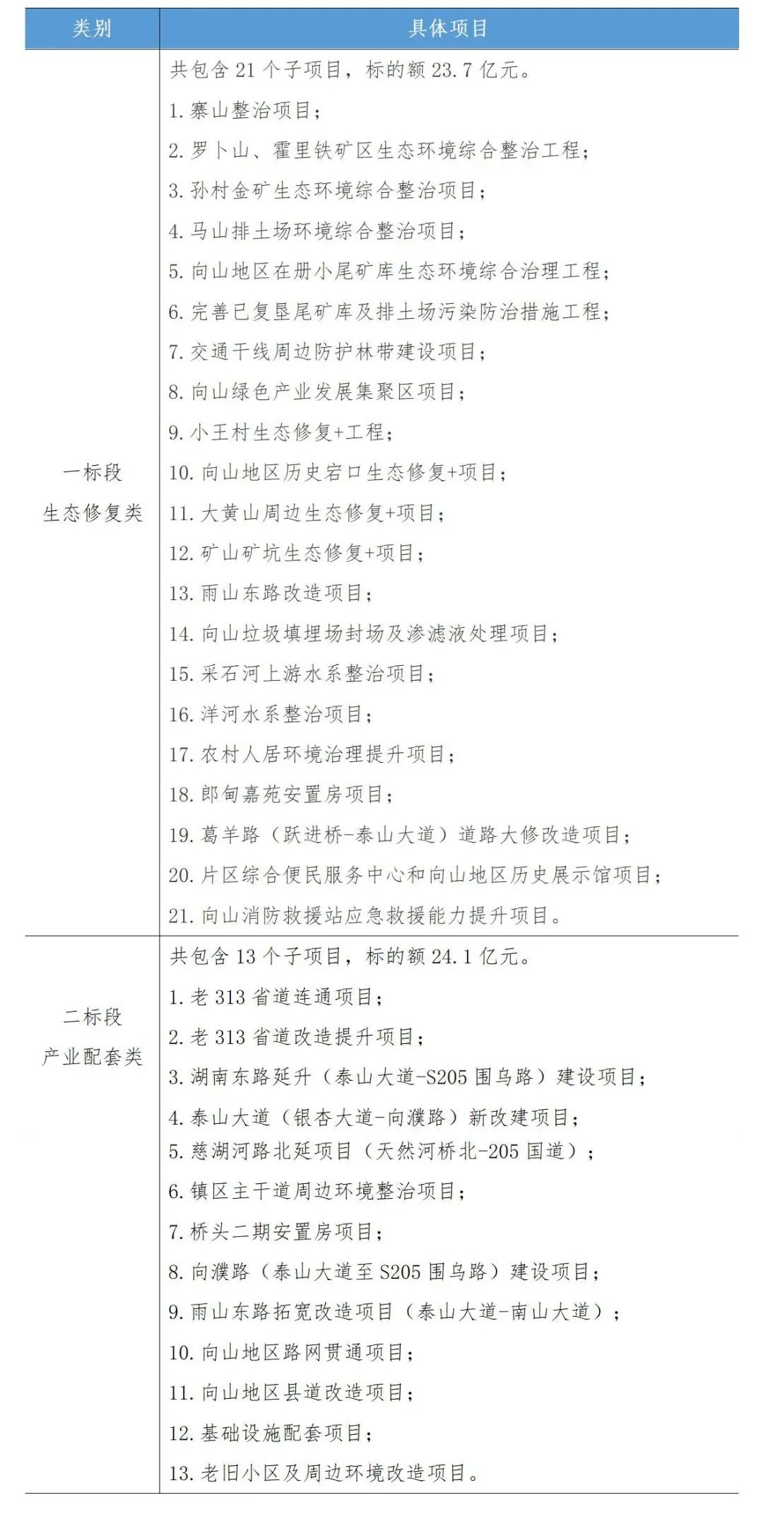 表2-1 馬鞍山市向山地區(qū)生態(tài)環(huán)境導(dǎo)向的開發(fā)項(xiàng)目建設(shè)內(nèi)容