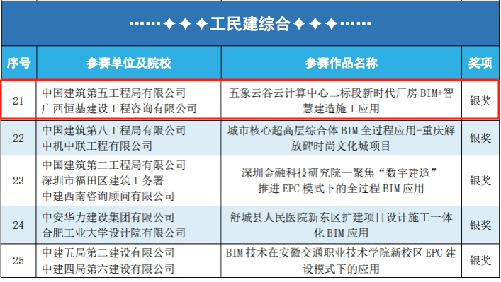 近日,由工業(yè)和信息化部人才交流中心主辦的2023第六屆“優(yōu)路杯”全國(guó)BIM技術(shù)大賽公布獲獎(jiǎng)名單,恒基咨詢報(bào)送的作品《五象云谷云計(jì)算中心二標(biāo)段新時(shí)代廠房BIM+智慧建造施工應(yīng)用》榮獲大賽銀獎(jiǎng)。