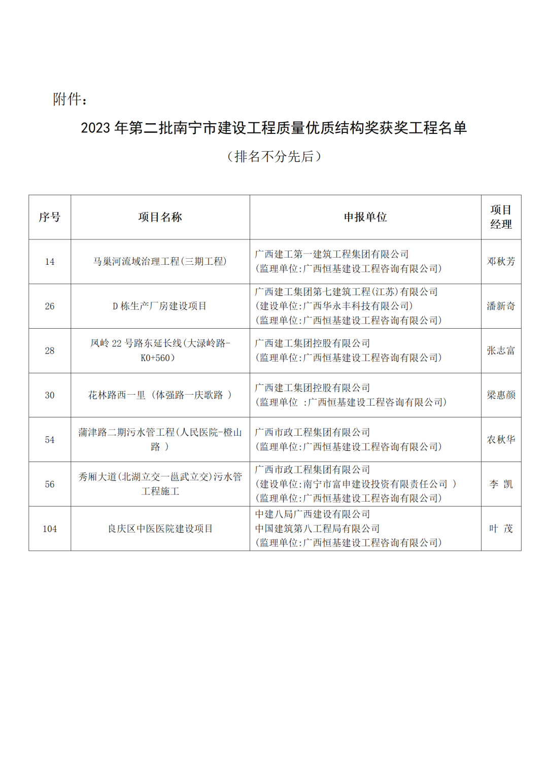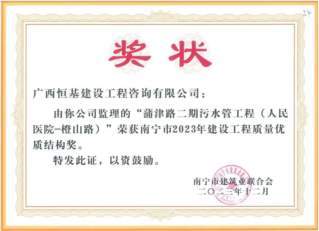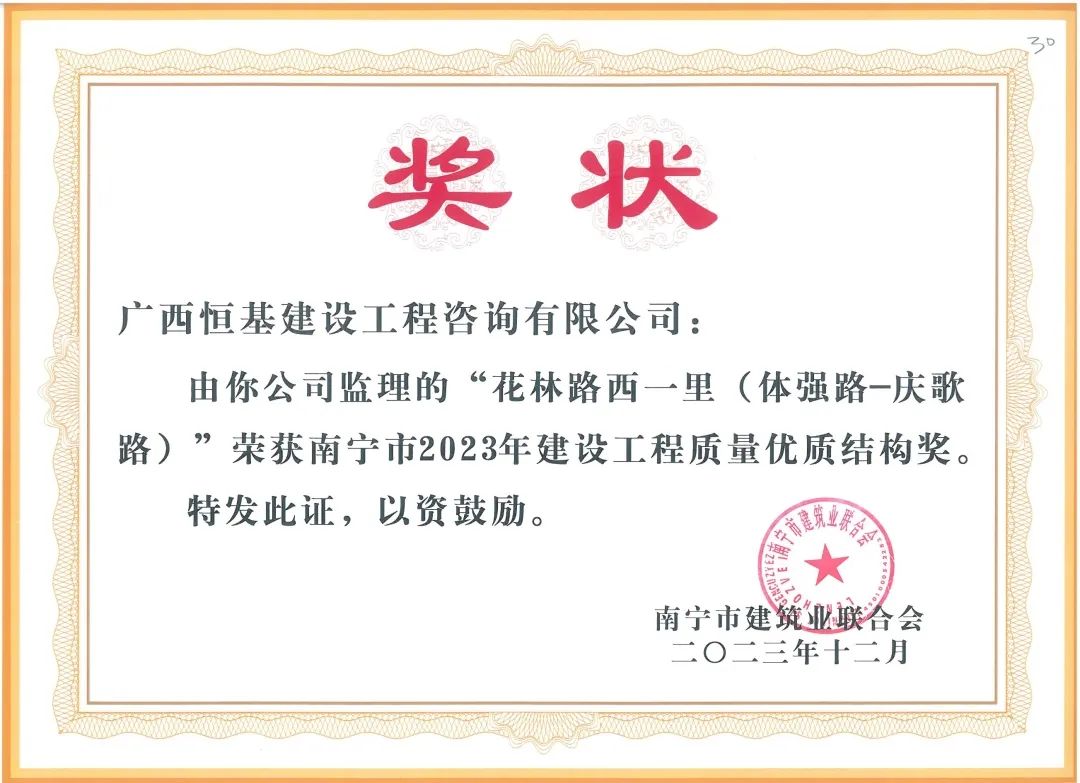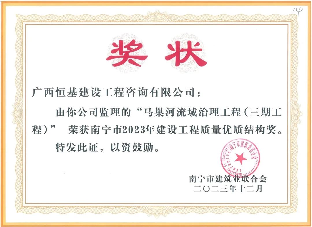 再添7項南寧市建設(shè)工程質(zhì)量優(yōu)質(zhì)結(jié)構(gòu)獎!