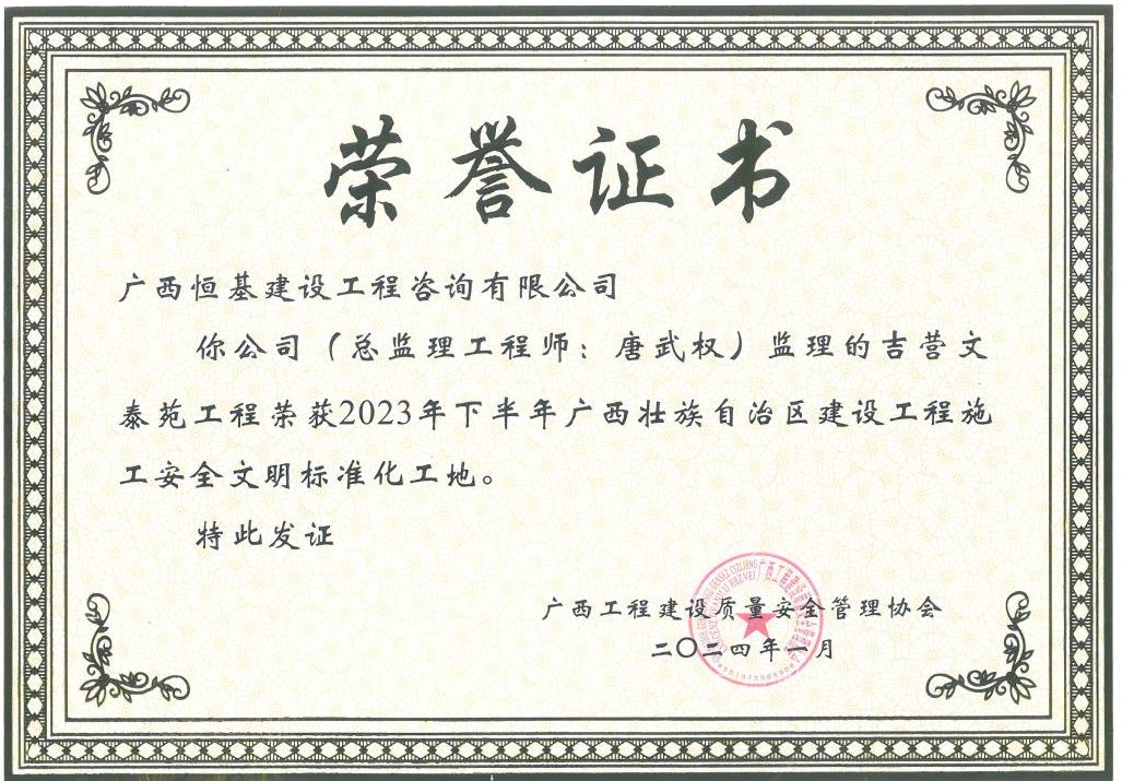 01 2023年下半年廣西壯族自治區(qū)建設(shè)工程施工安全文明標(biāo)準(zhǔn)化工地