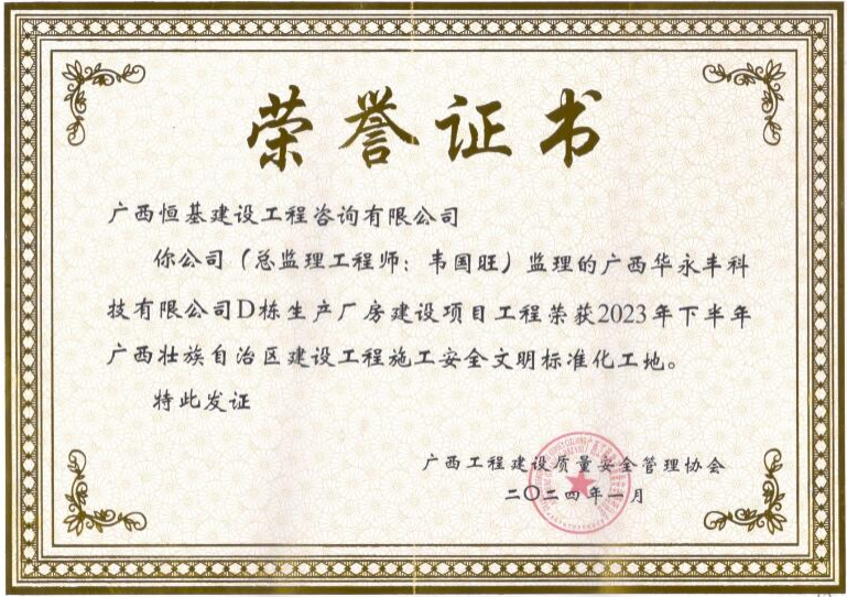 近日,廣西工程建設(shè)質(zhì)量安全管理協(xié)會(huì)、南寧市建設(shè)工程質(zhì)量安全協(xié)會(huì)分別公布了2023年下半年廣西壯族自治區(qū)建設(shè)工程施工安全文明標(biāo)準(zhǔn)化工地名單、2023年南寧市建設(shè)工程安全文明標(biāo)準(zhǔn)化誠(chéng)信工地(第二批)名單。恒基咨詢3個(gè)項(xiàng)目榮獲2023年下半年廣西壯族自治區(qū)建設(shè)工程施工安全文明標(biāo)準(zhǔn)化工地,2個(gè)項(xiàng)目榮獲2023年南寧市建設(shè)工程安全文明標(biāo)準(zhǔn)化誠(chéng)信工地。
