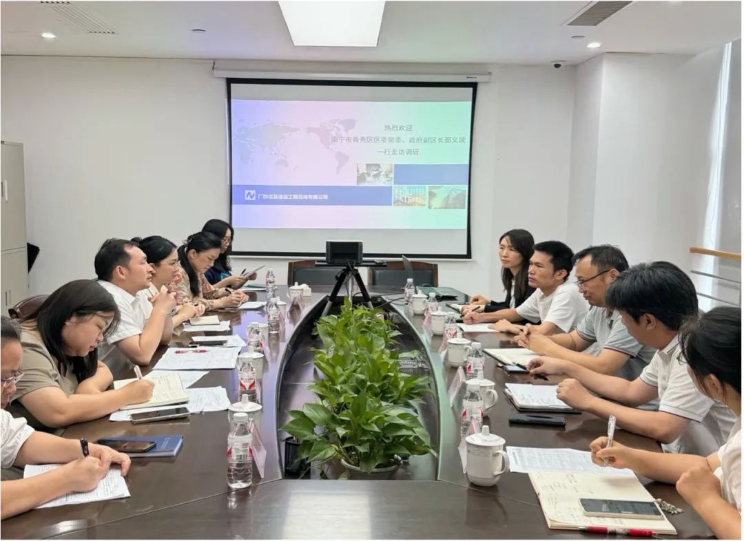 6月24日,南寧市青秀區(qū)委常委、常務(wù)副區(qū)長邢義波與青秀區(qū)統(tǒng)計(jì)局、青秀區(qū)住房和城鄉(xiāng)建設(shè)局、南湖街道等相關(guān)領(lǐng)導(dǎo)赴恒基咨詢公司走訪調(diào)研。恒基咨詢董事長周赤衛(wèi),總經(jīng)理黃俊才、常務(wù)副總經(jīng)理任坤、財(cái)務(wù)總監(jiān)吉蘭芳、總經(jīng)理助理劉世健出席座談。