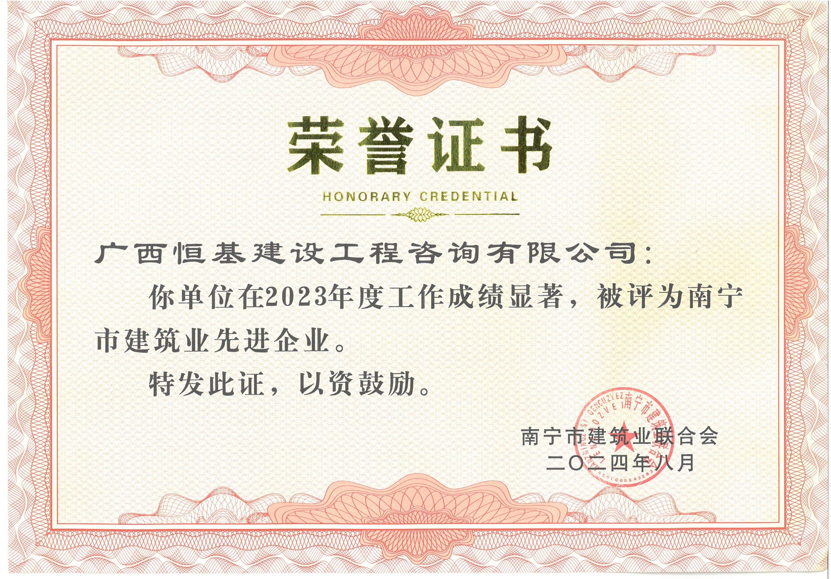 2023年度南寧市建筑業(yè)先進(jìn)企業(yè)