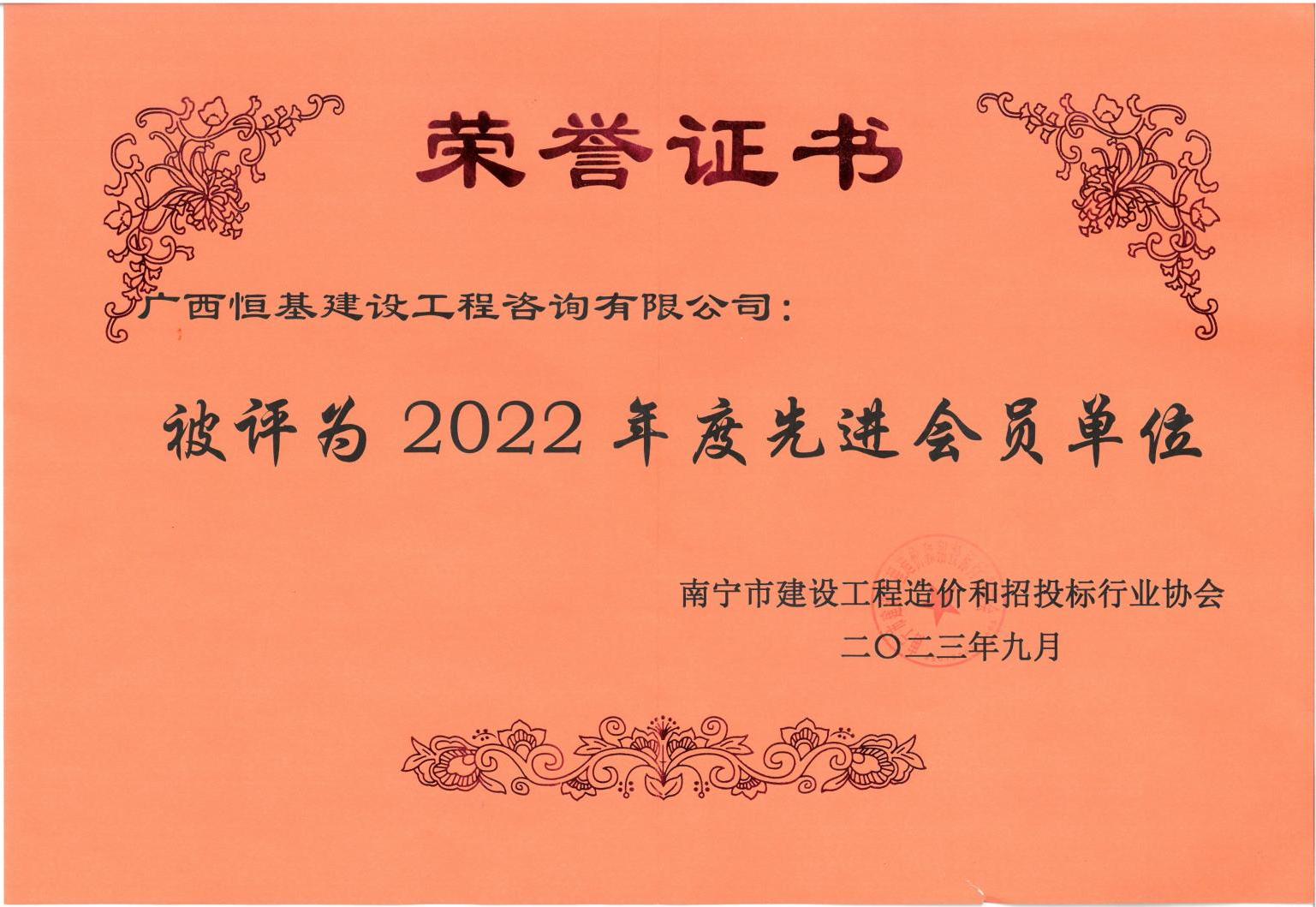 2022年度南寧市建設(shè)工程造價(jià)和招投標(biāo)行業(yè)協(xié)會先進(jìn)會員單位