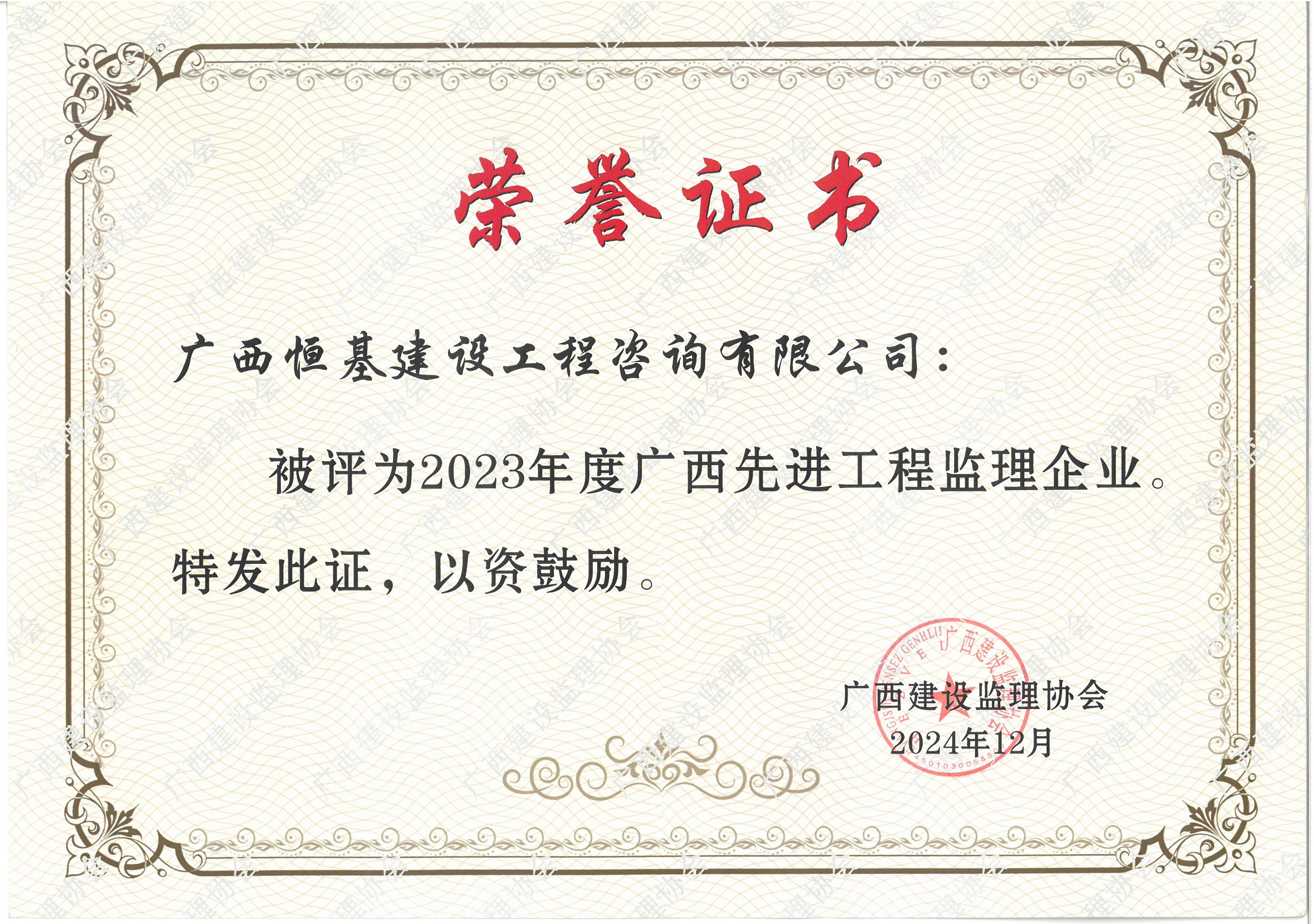 2023年度廣西先進(jìn)工程監(jiān)理企業(yè)