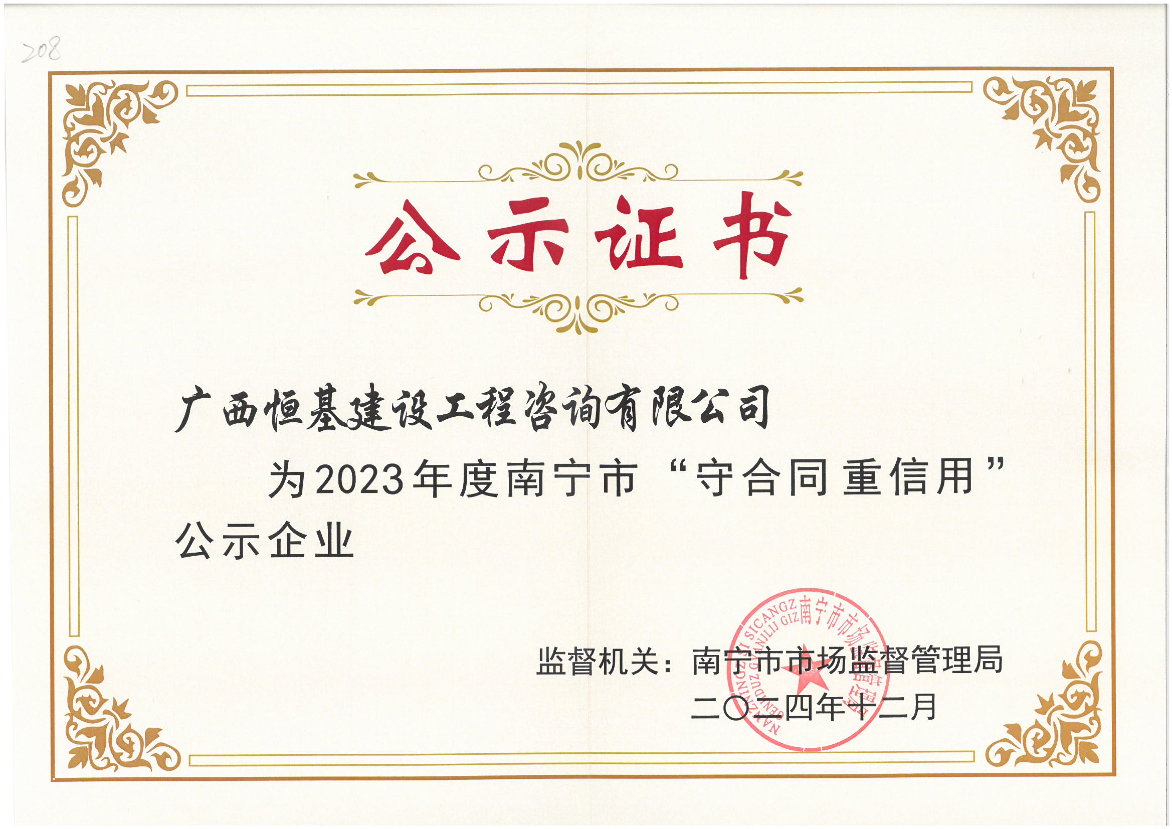 2023年度廣西壯族自治區(qū)“守合同重信用”公示企業(yè)