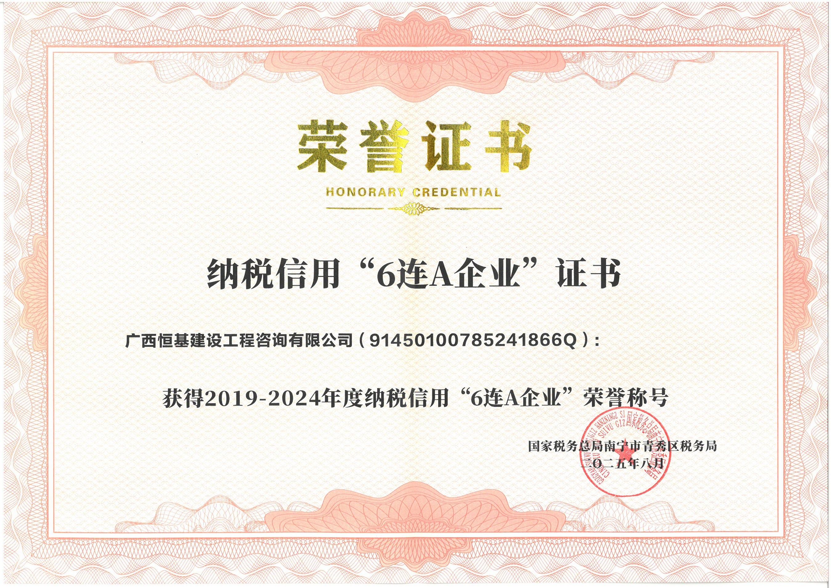 2019-2024年度納稅信用“6連A企業(yè)”