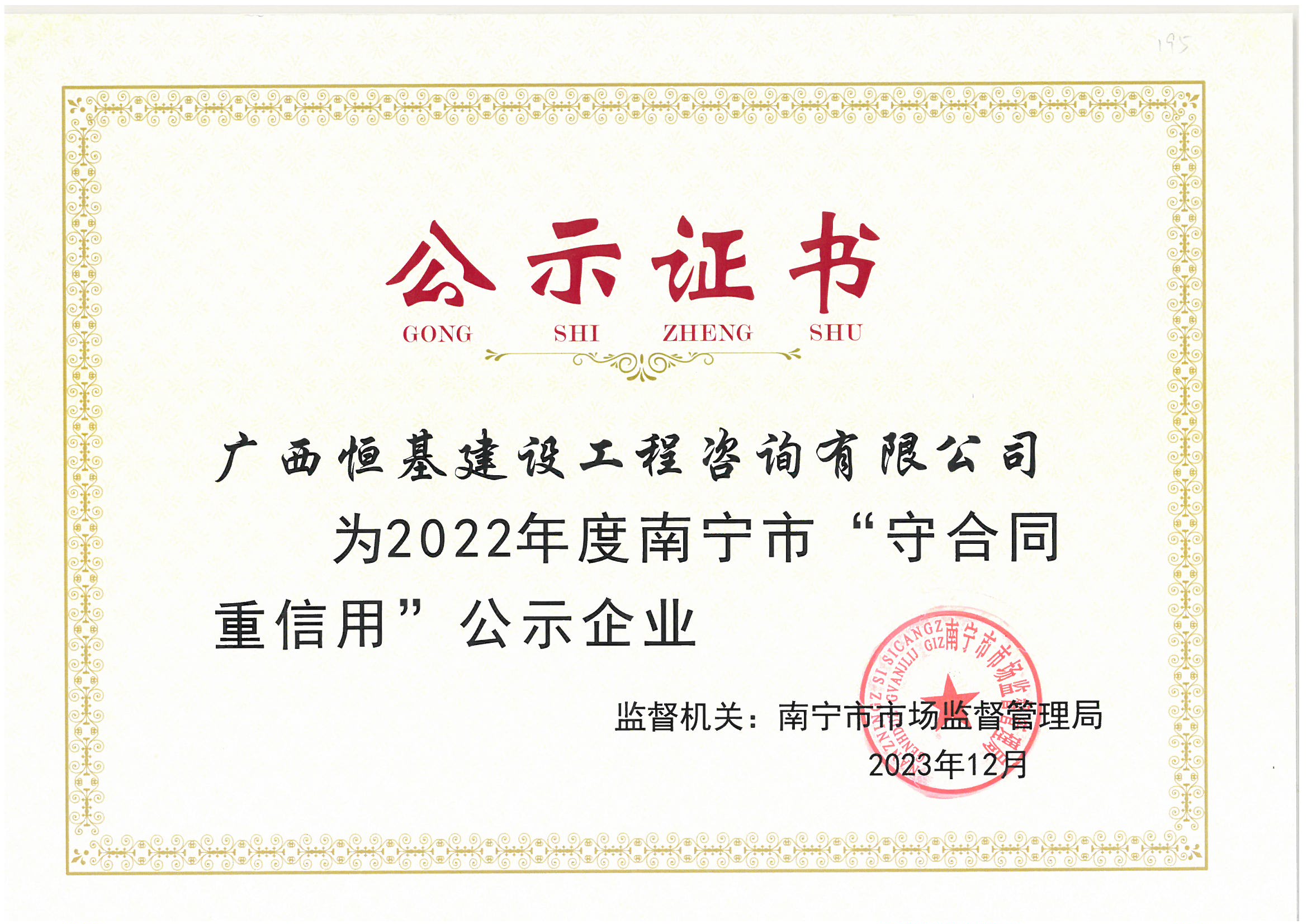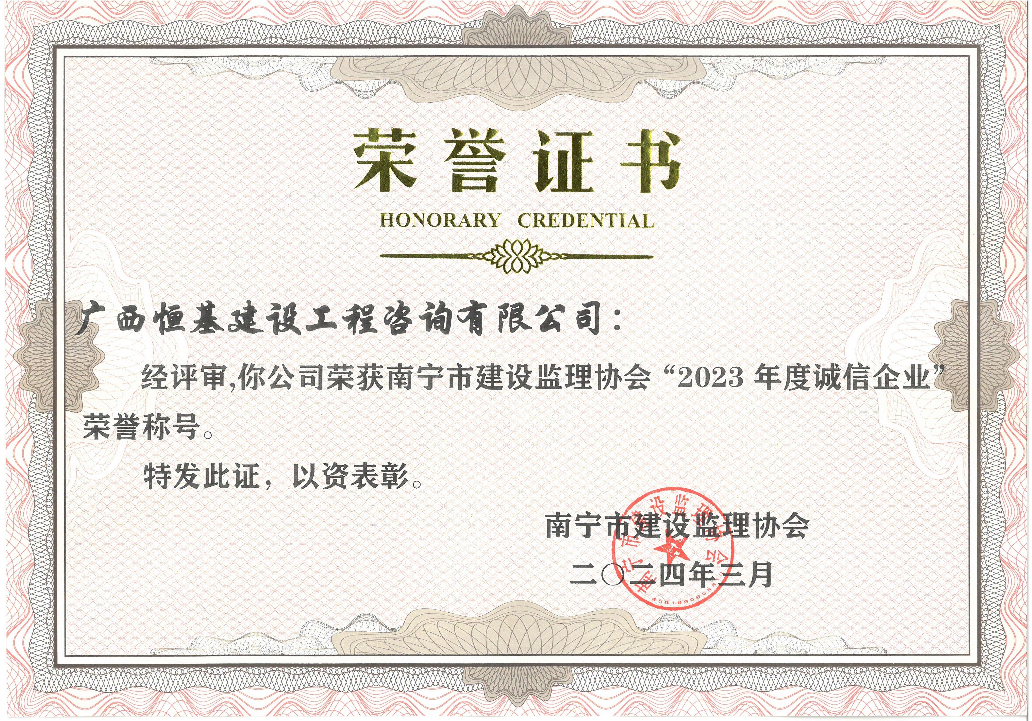 南寧市建設(shè)監(jiān)理協(xié)會(huì)2023年度誠(chéng)信企業(yè)