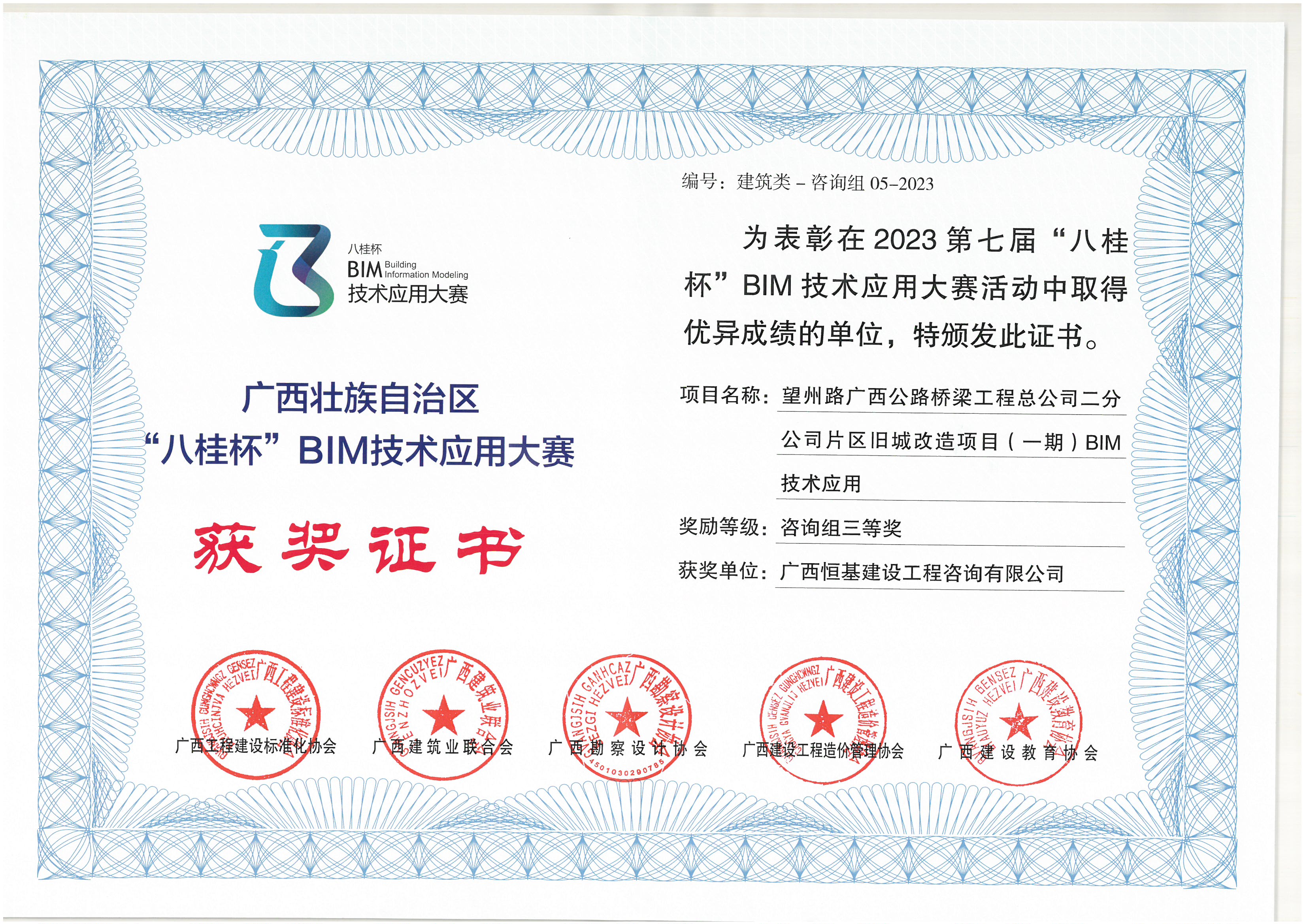 2023第七屆“八桂杯”BIM技術(shù)應(yīng)用大賽-望州路廣西公路橋梁工程總公司二分公司片區(qū)舊城改造項(xiàng)目(一期)BIM技術(shù)應(yīng)用-咨詢組三等獎(jiǎng)