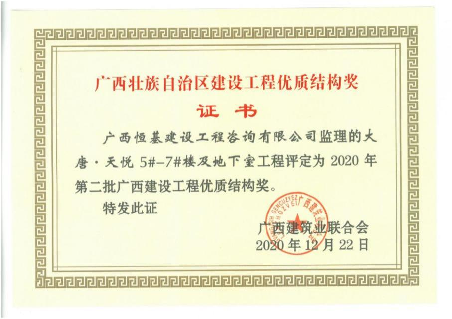 大唐·天悅5#-7#樓及地下室工程——2021年第二批廣西建設(shè)工程優(yōu)質(zhì)結(jié)構(gòu)獎