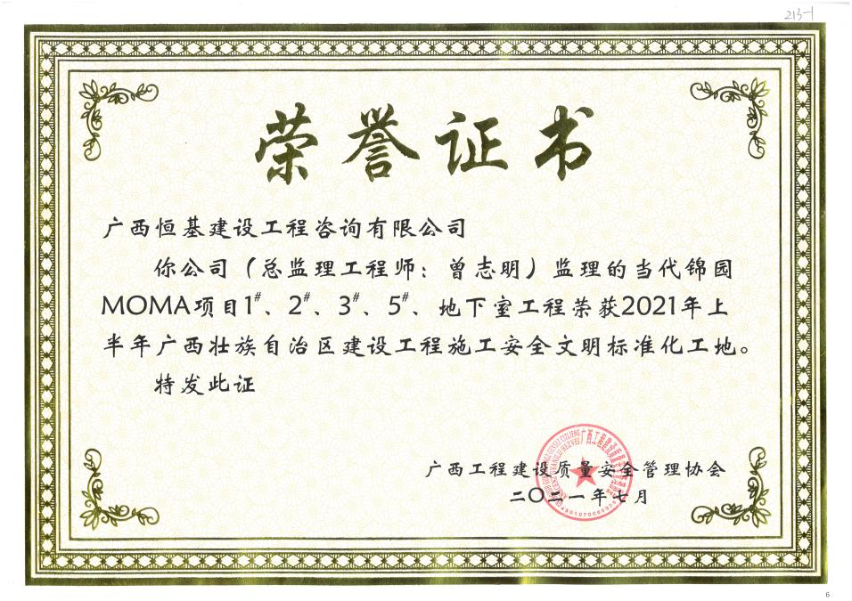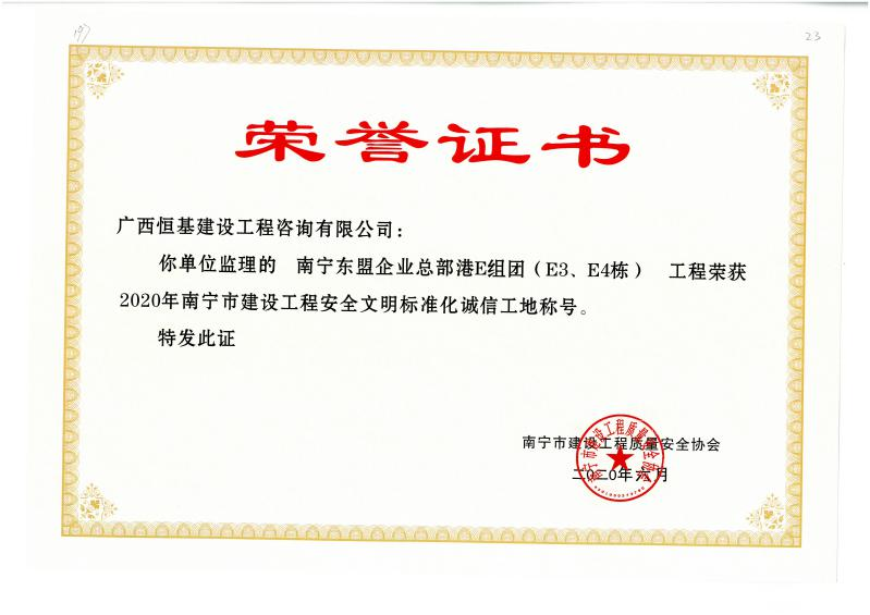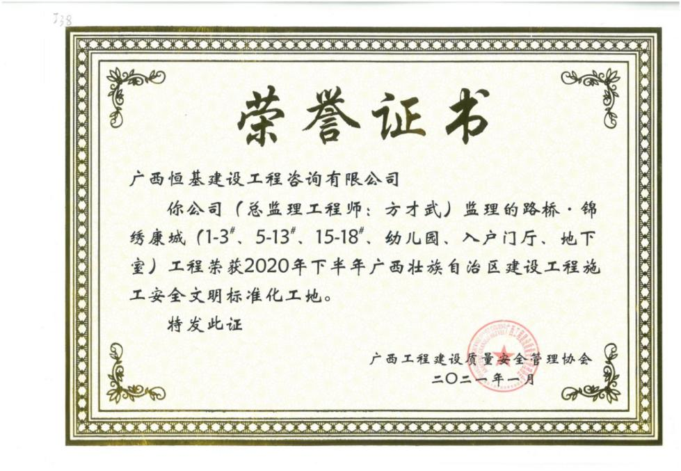 2020年南寧市建設(shè)工程安全文明標(biāo)準(zhǔn)化誠信工地稱號