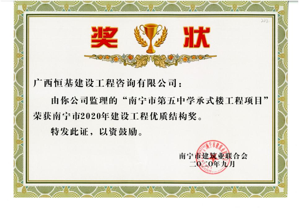 南寧市第五中學(xué)承式樓工程項(xiàng)目——南寧市2020年建設(shè)工程優(yōu)質(zhì)結(jié)構(gòu)獎