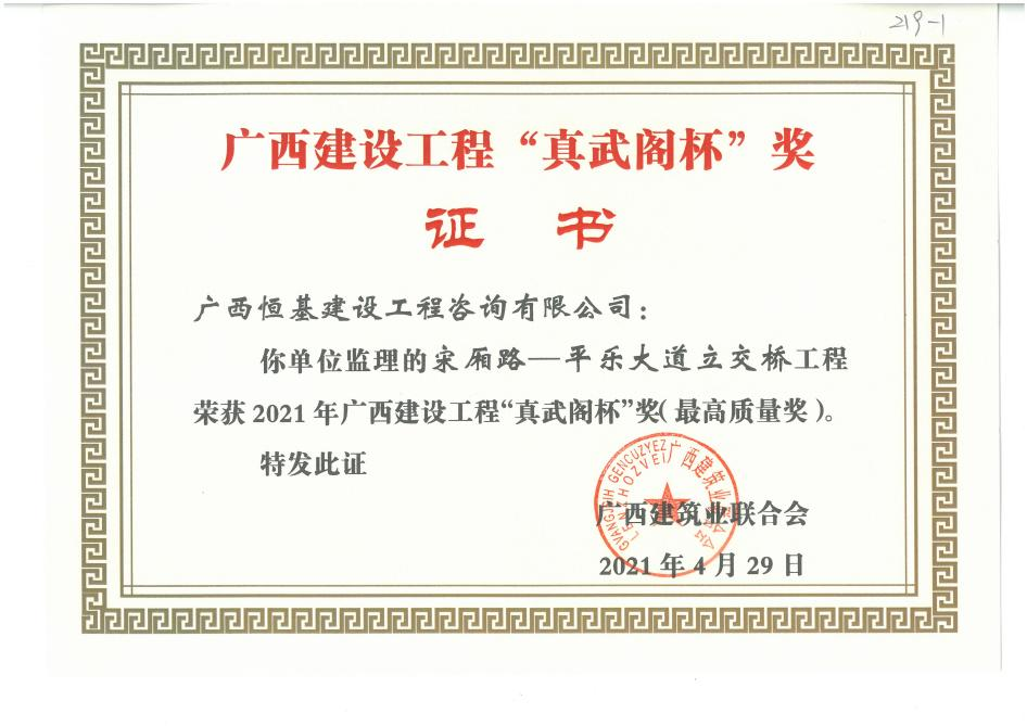 宋廂路-平樂大道立交橋工程——2021年廣西建設(shè)工程“真武閣杯”獎(最高質(zhì)量獎)