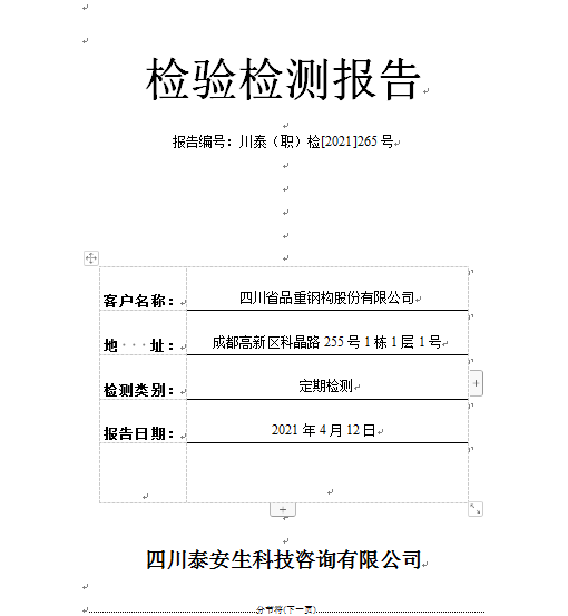 四川省品重鋼構(gòu)股份有限公司職業(yè)病危害因素2021年定期檢測