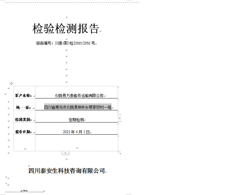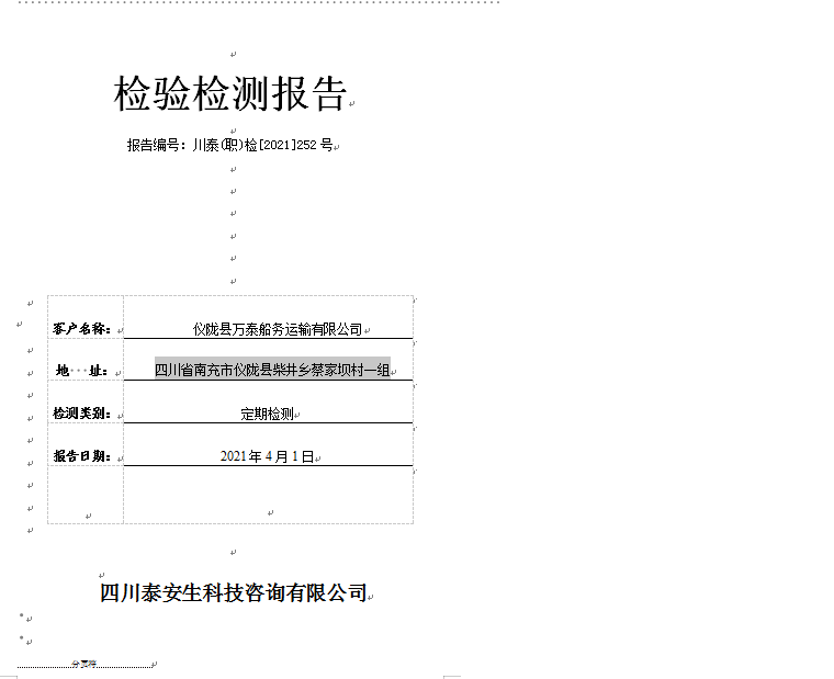 儀隴縣萬泰船務(wù)運輸有限公司職業(yè)病危害因素檢測公示