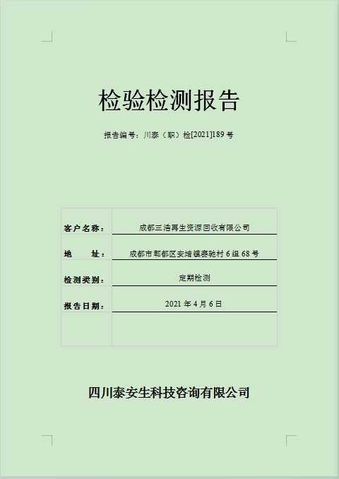 成都三浩再生資源回收有限公司職業(yè)病危害因素檢測公示