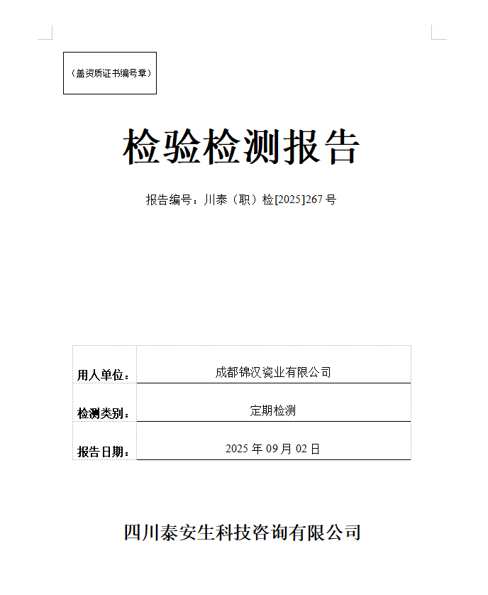 峨眉山金陶瓷業(yè)發(fā)展有限公司——川泰(職)檢[2025]303號(hào)