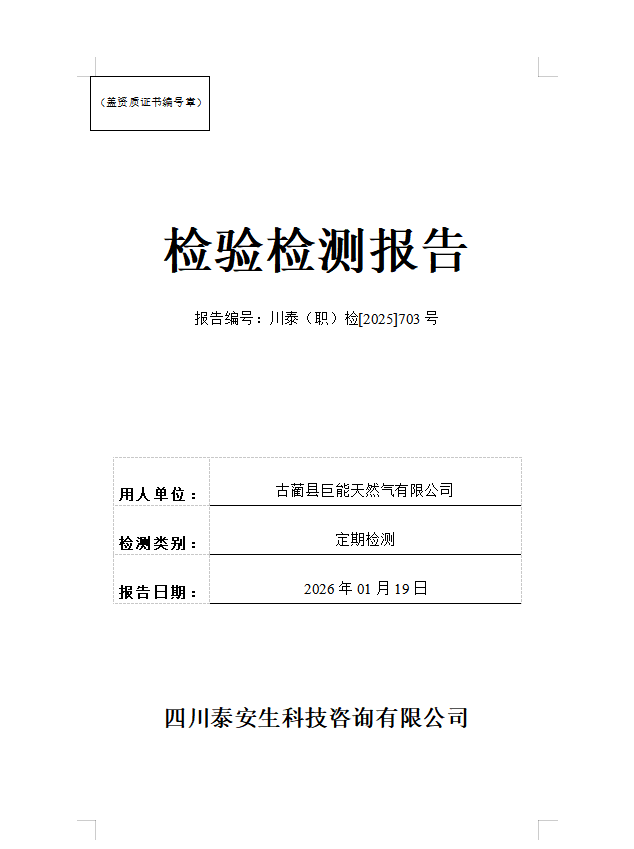 古藺縣巨能天然氣有限公司—川泰(職)檢[2025]703號(hào)