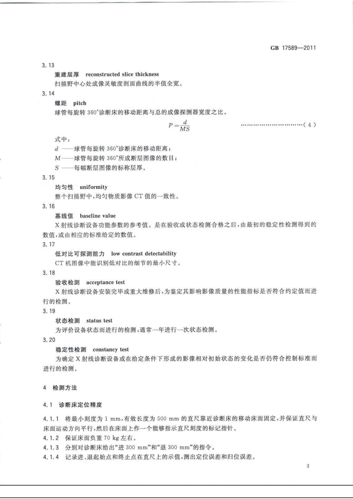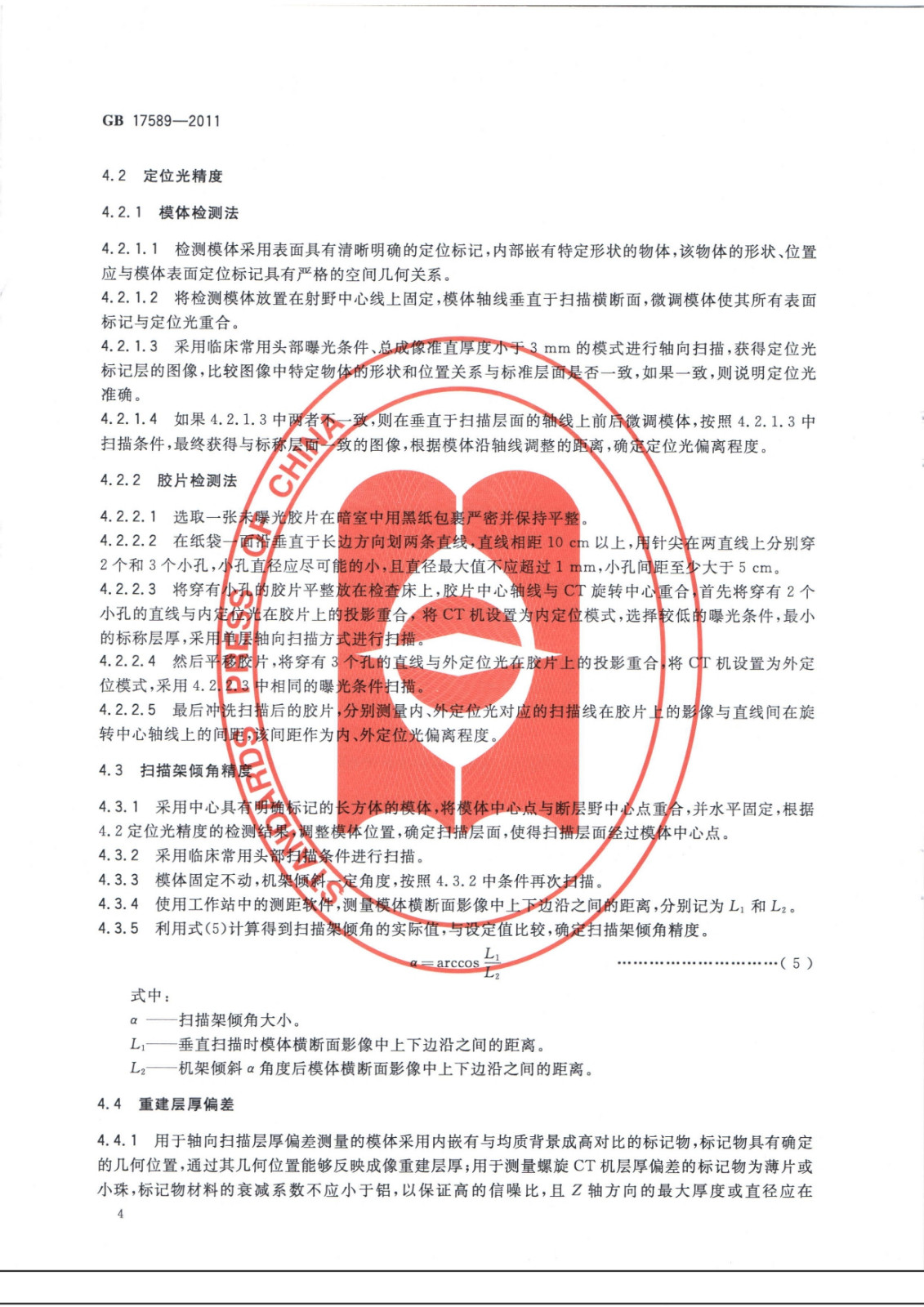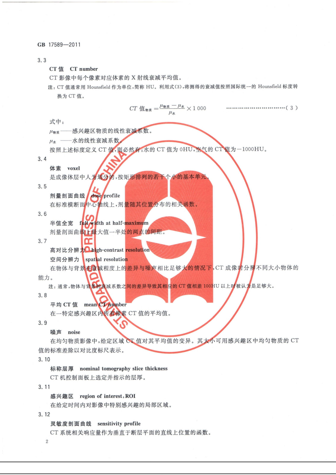 GB 17589-2011 X射線計算機斷層攝影裝置質(zhì)量保證檢測規(guī)范