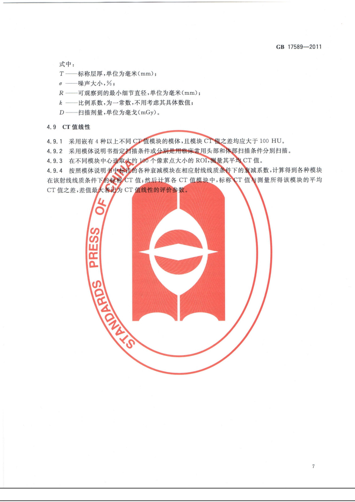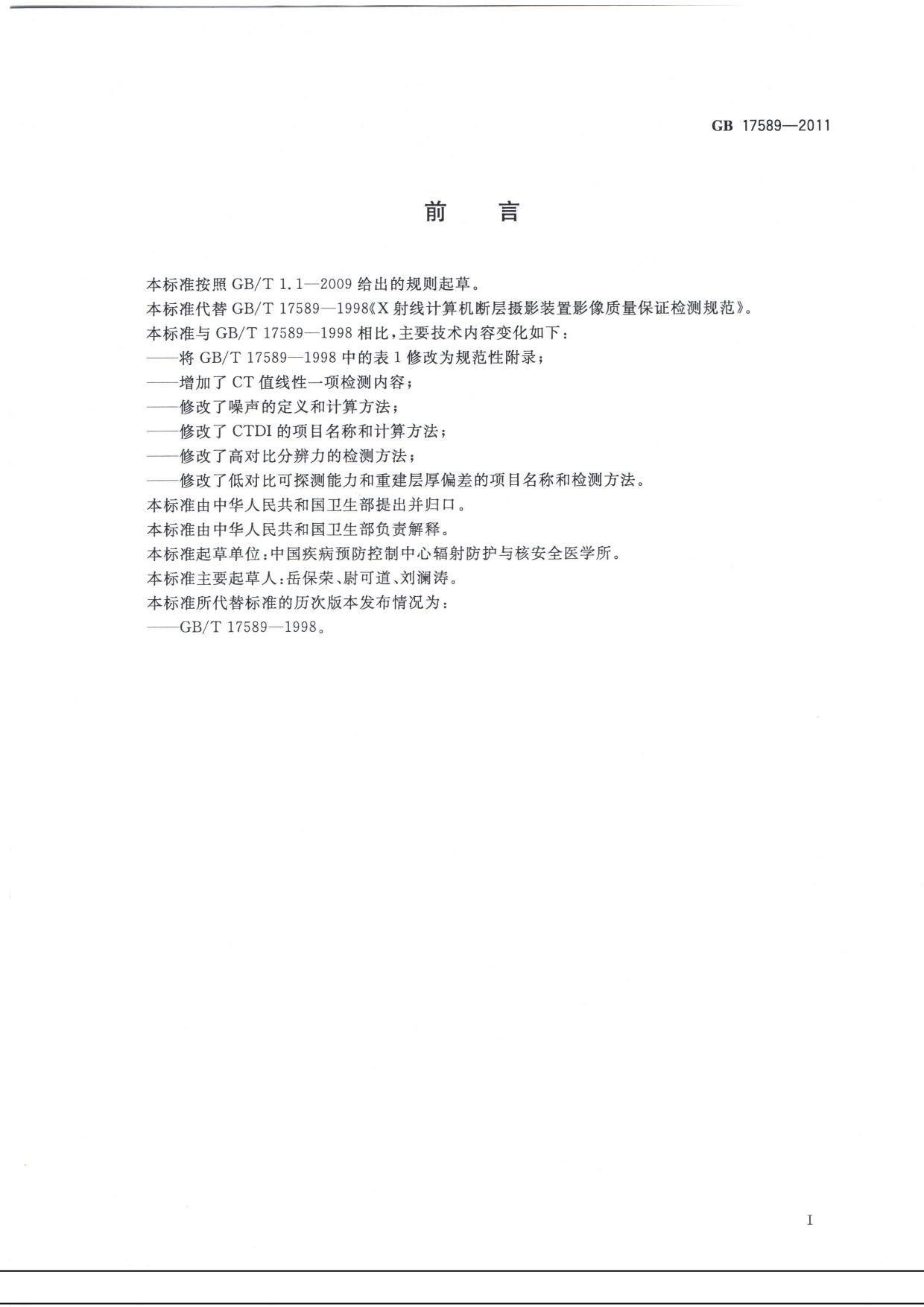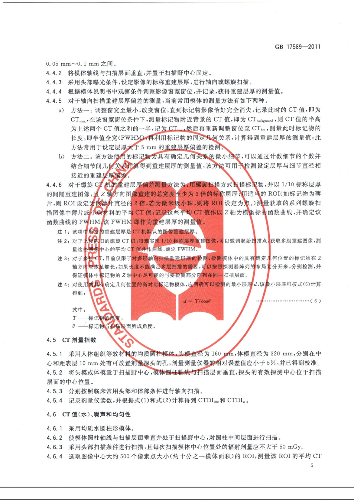 GB 17589-2011 X射線計算機斷層攝影裝置質(zhì)量保證檢測規(guī)范