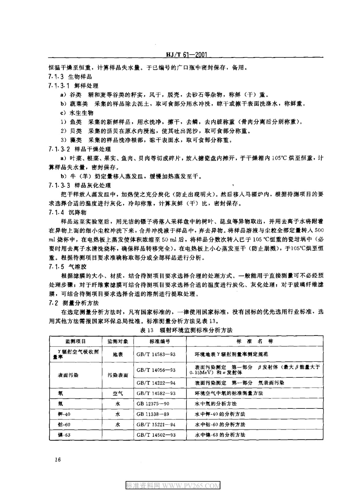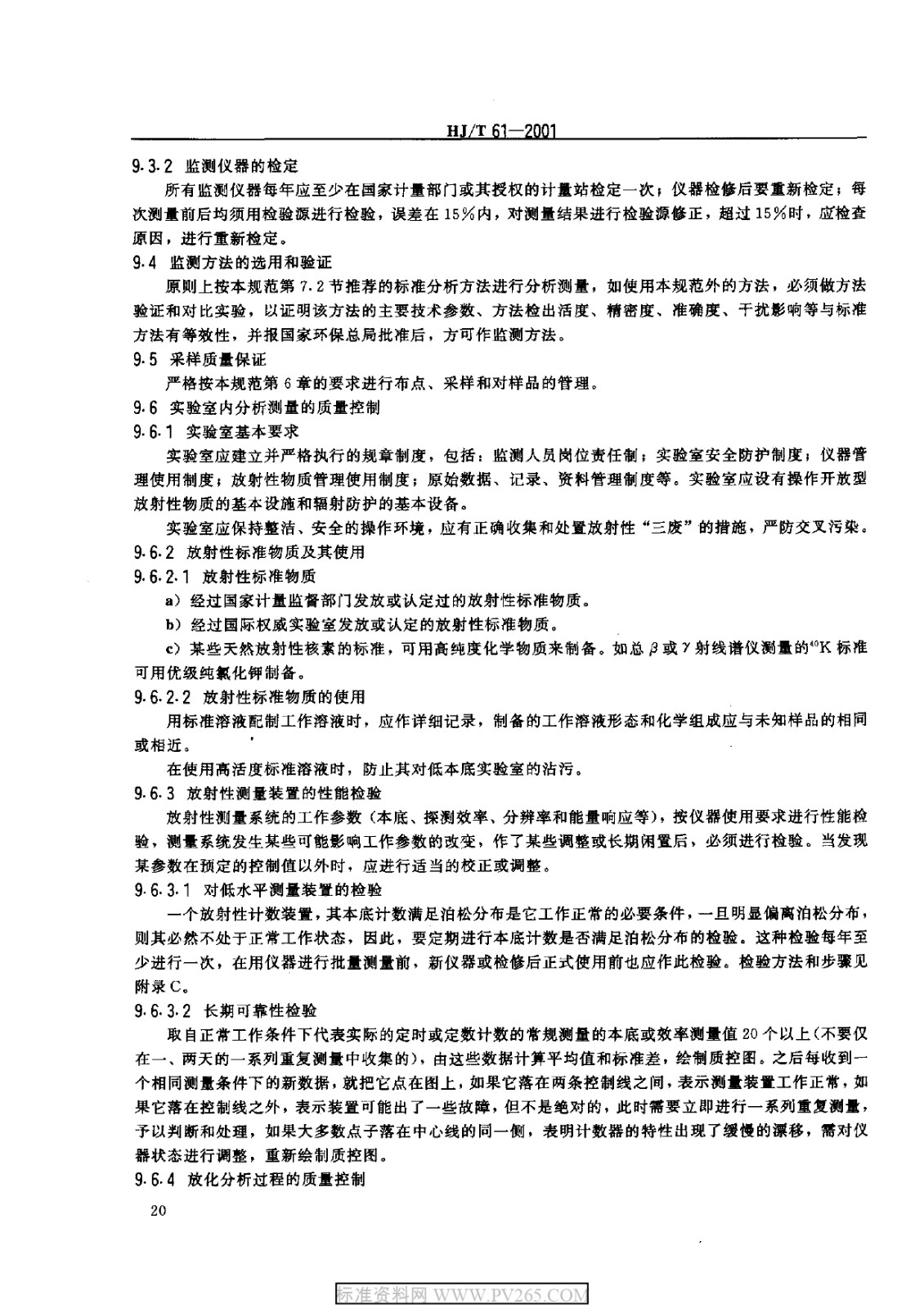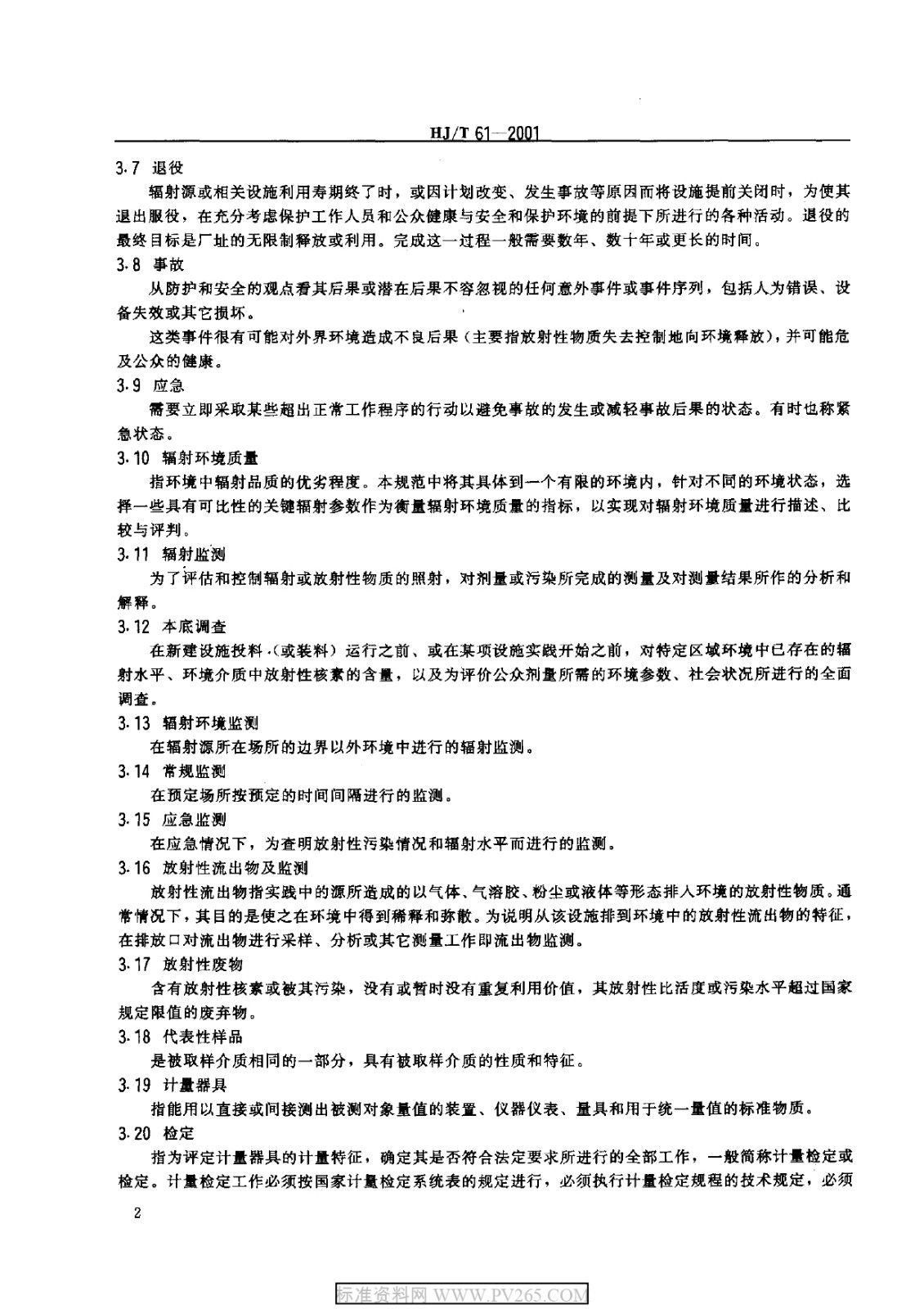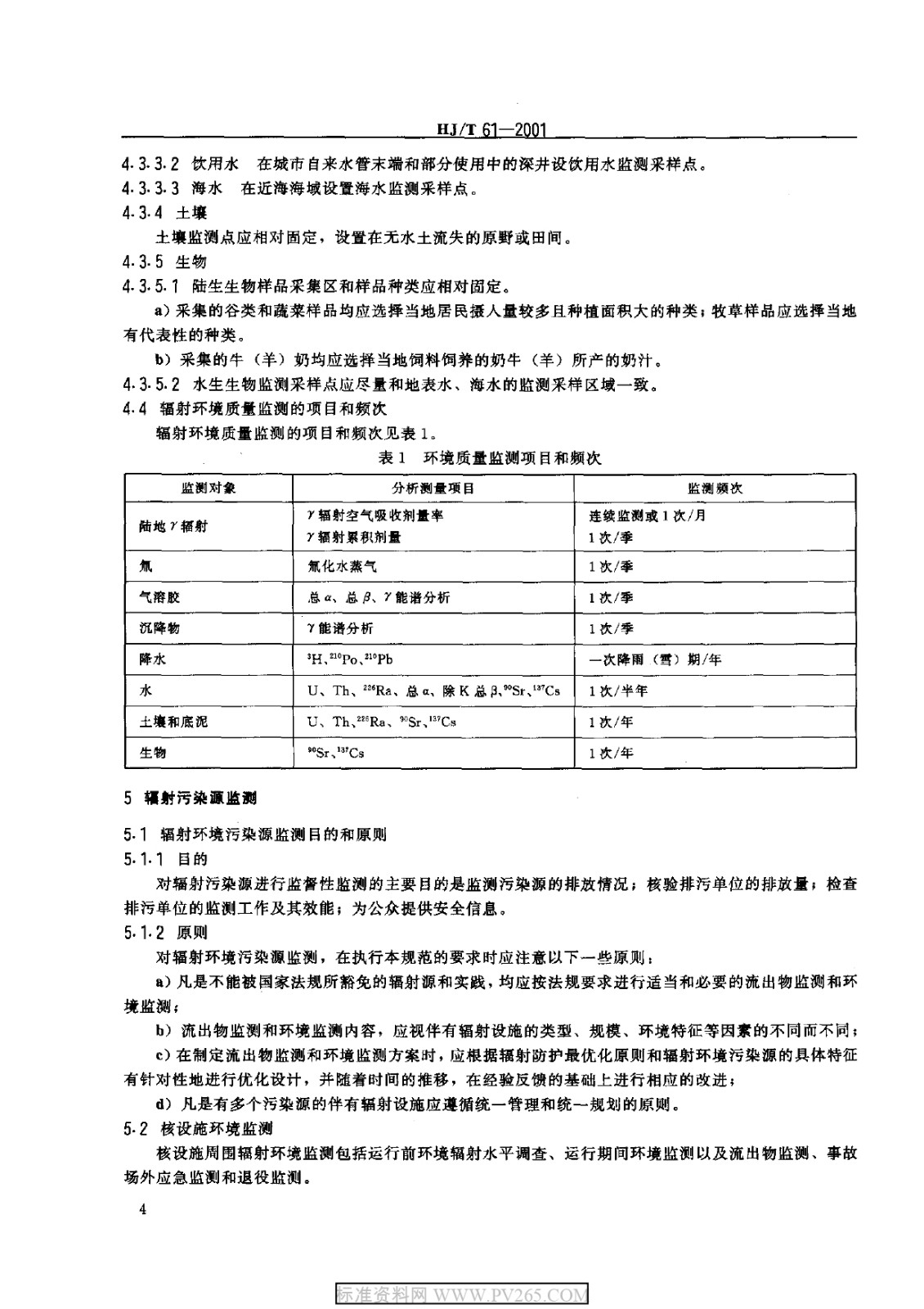 HJT 61-2001 輻射環(huán)境監(jiān)測技術(shù)規(guī)范