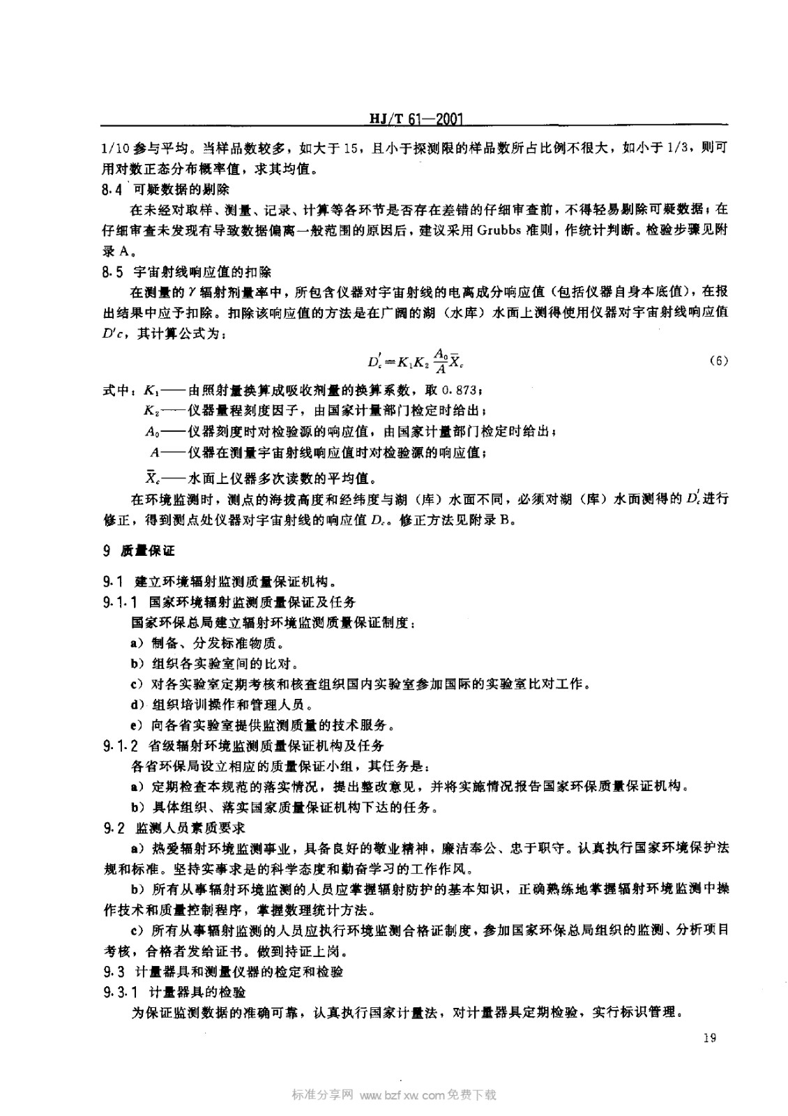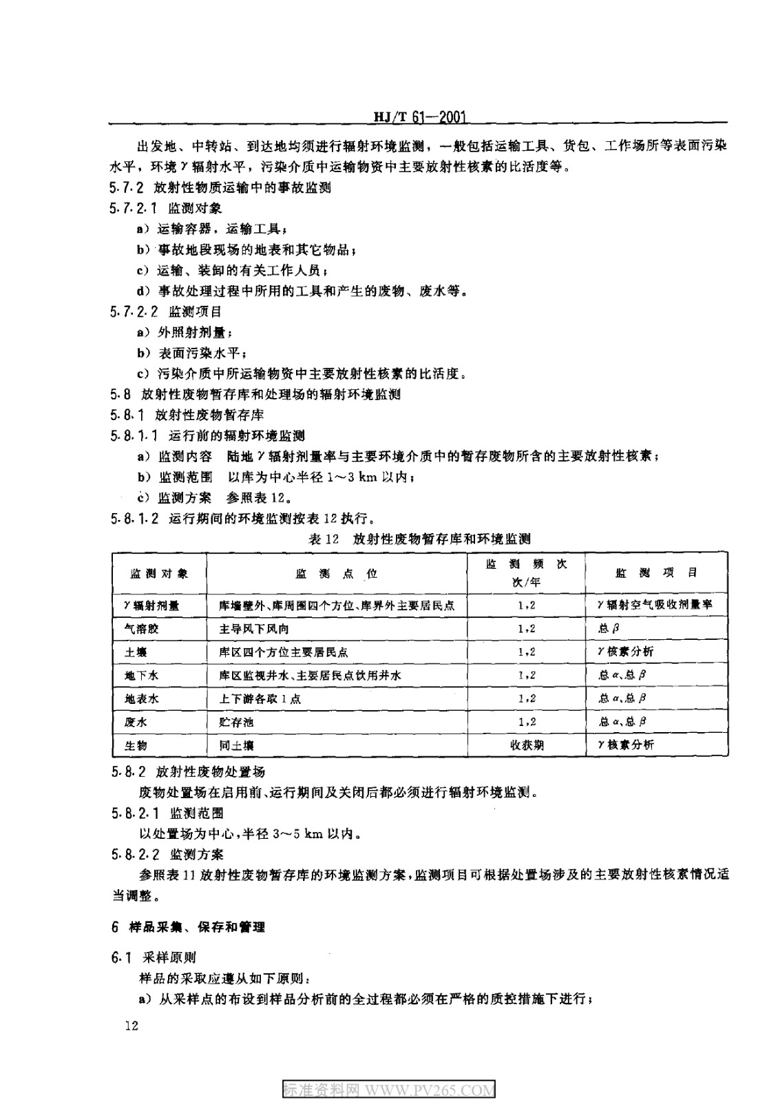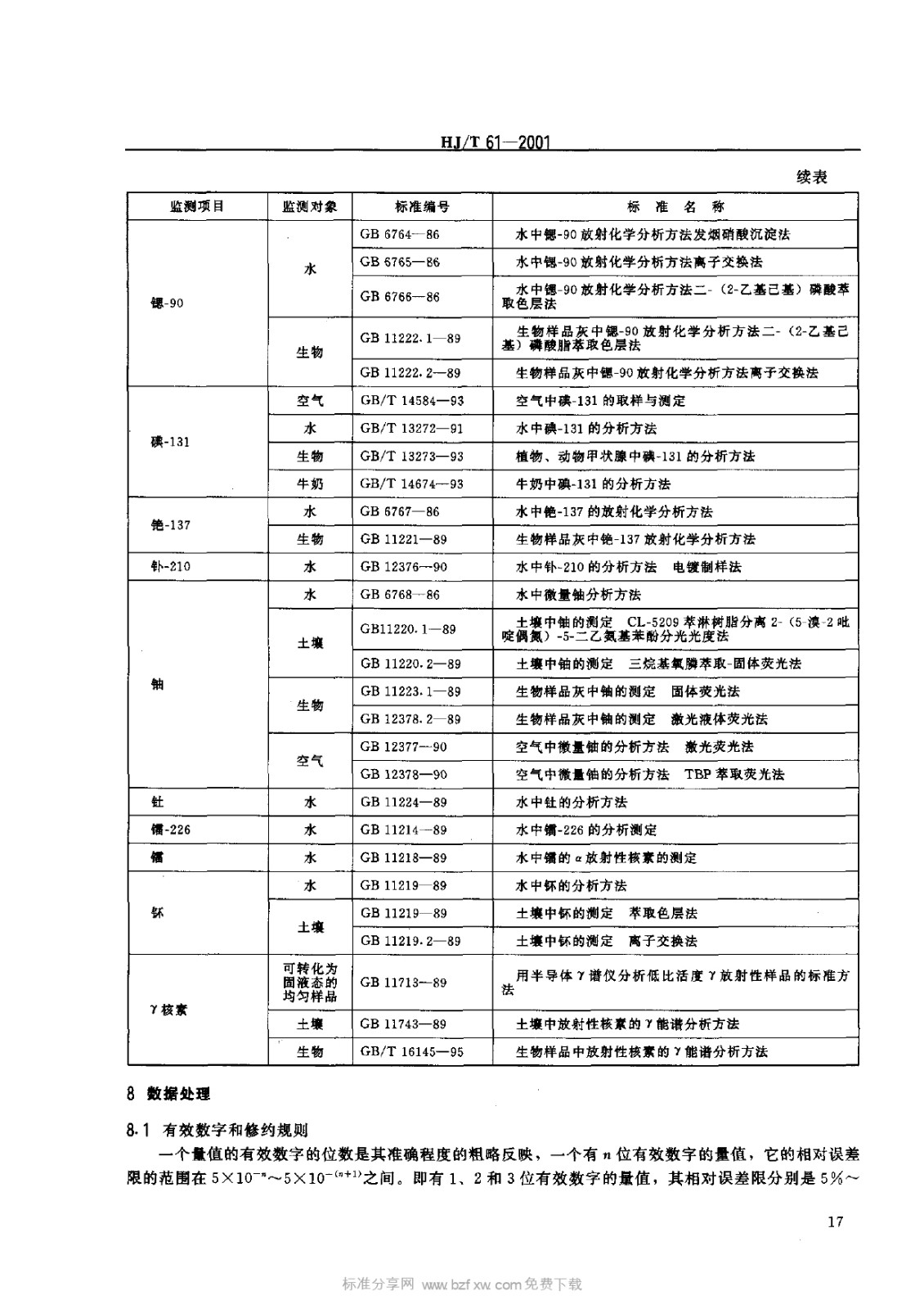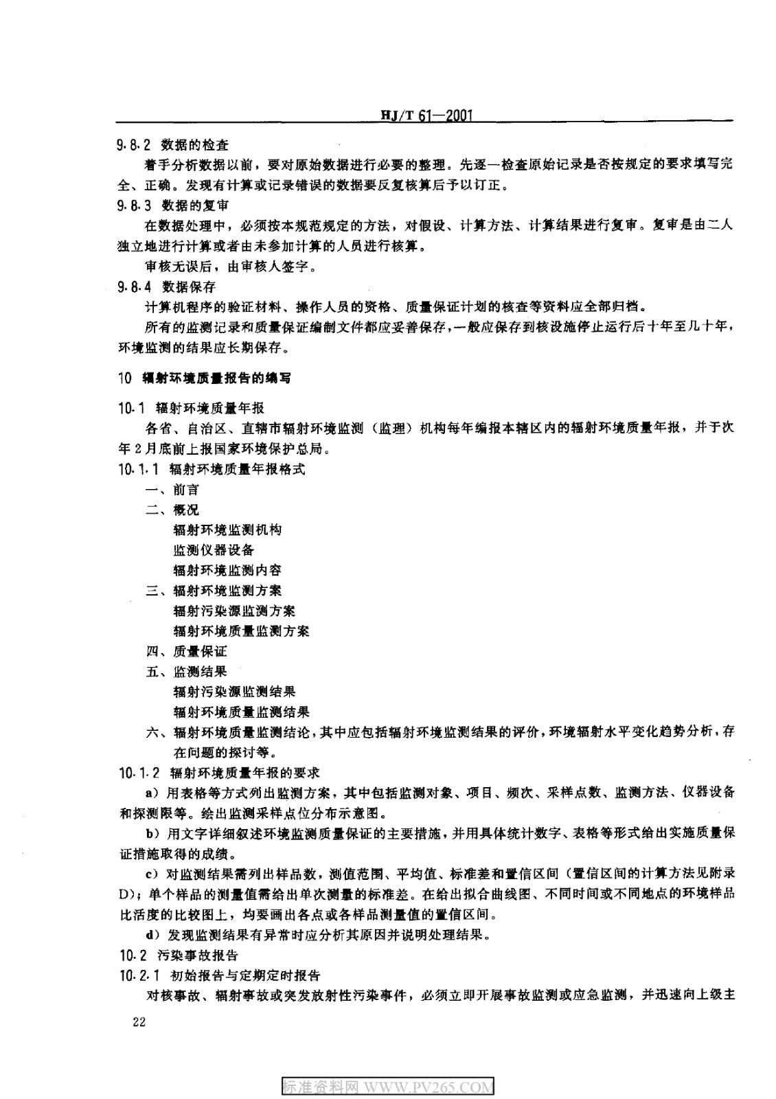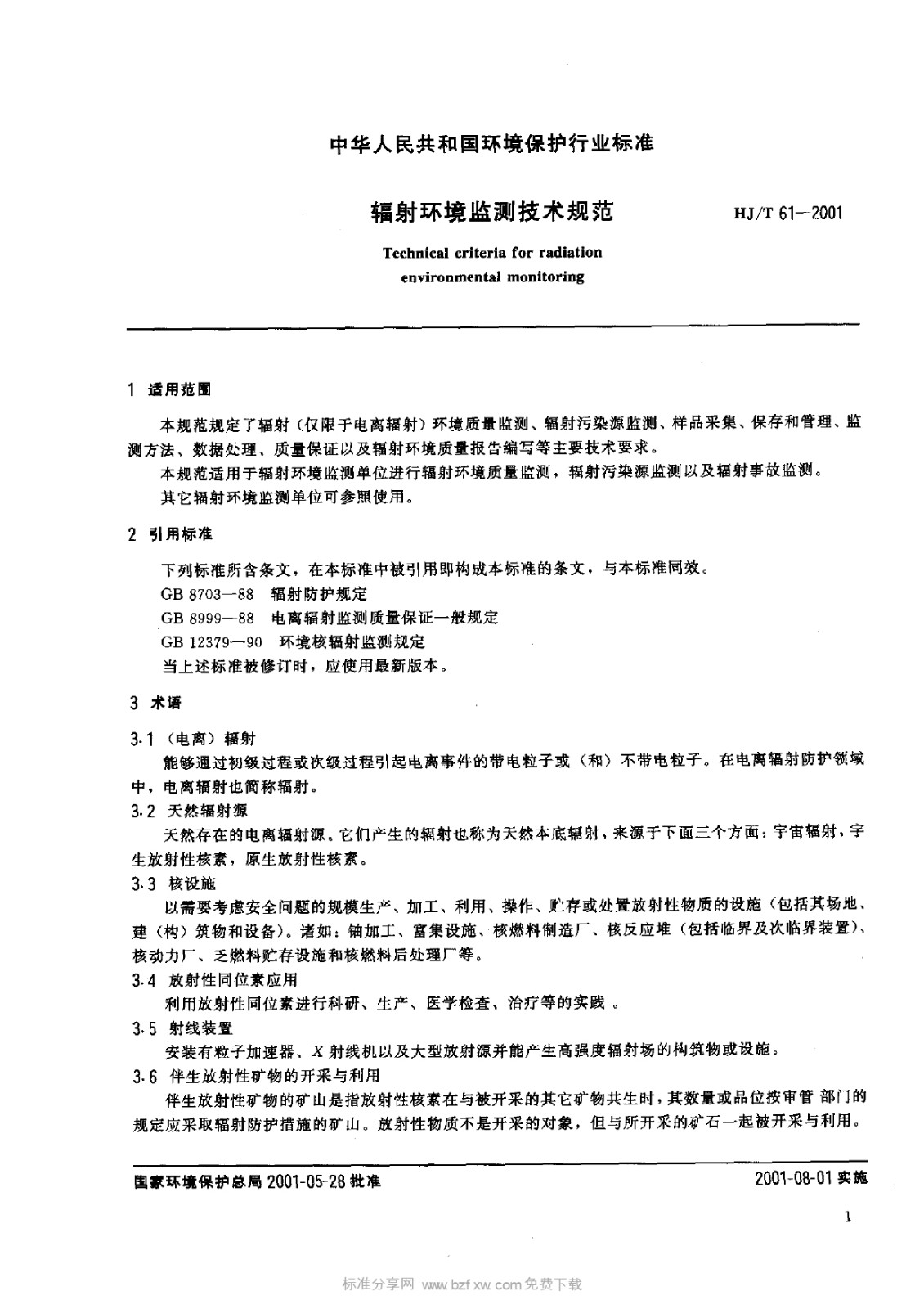 HJT 61-2001 輻射環(huán)境監(jiān)測技術(shù)規(guī)范