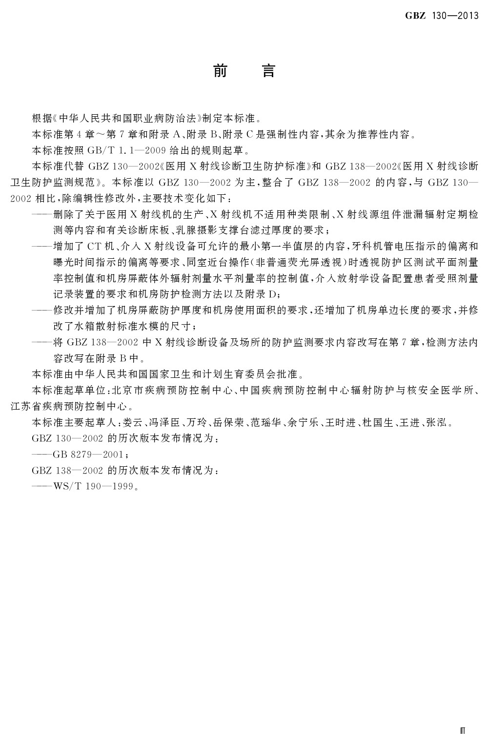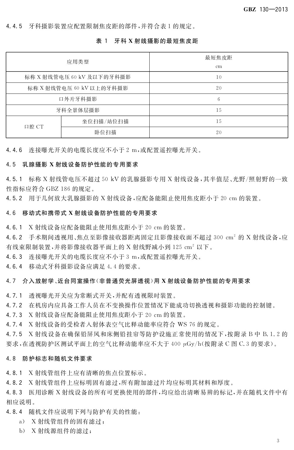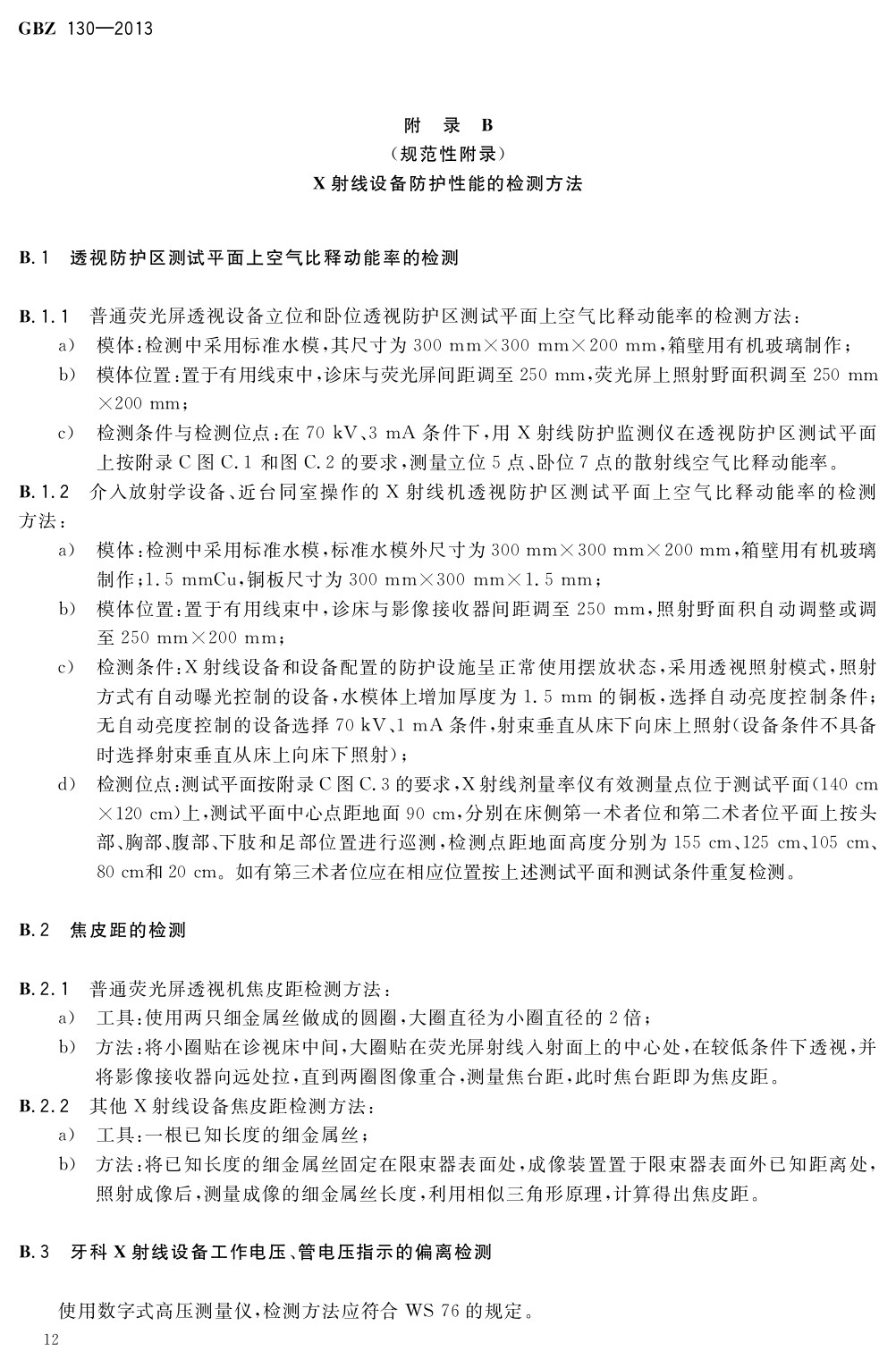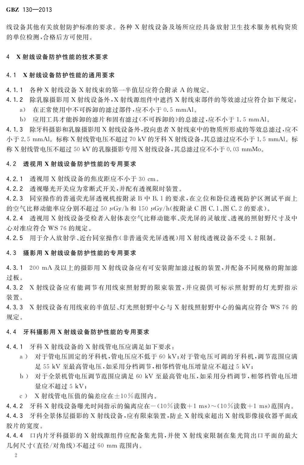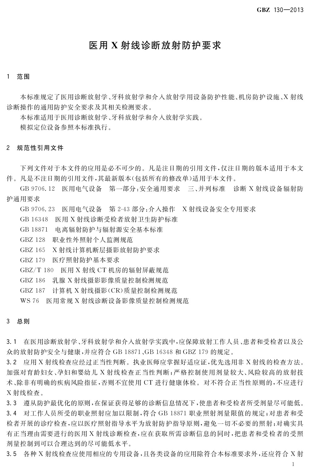 GBZ 130-2013 醫(yī)用X射線診斷放射防護(hù)要求