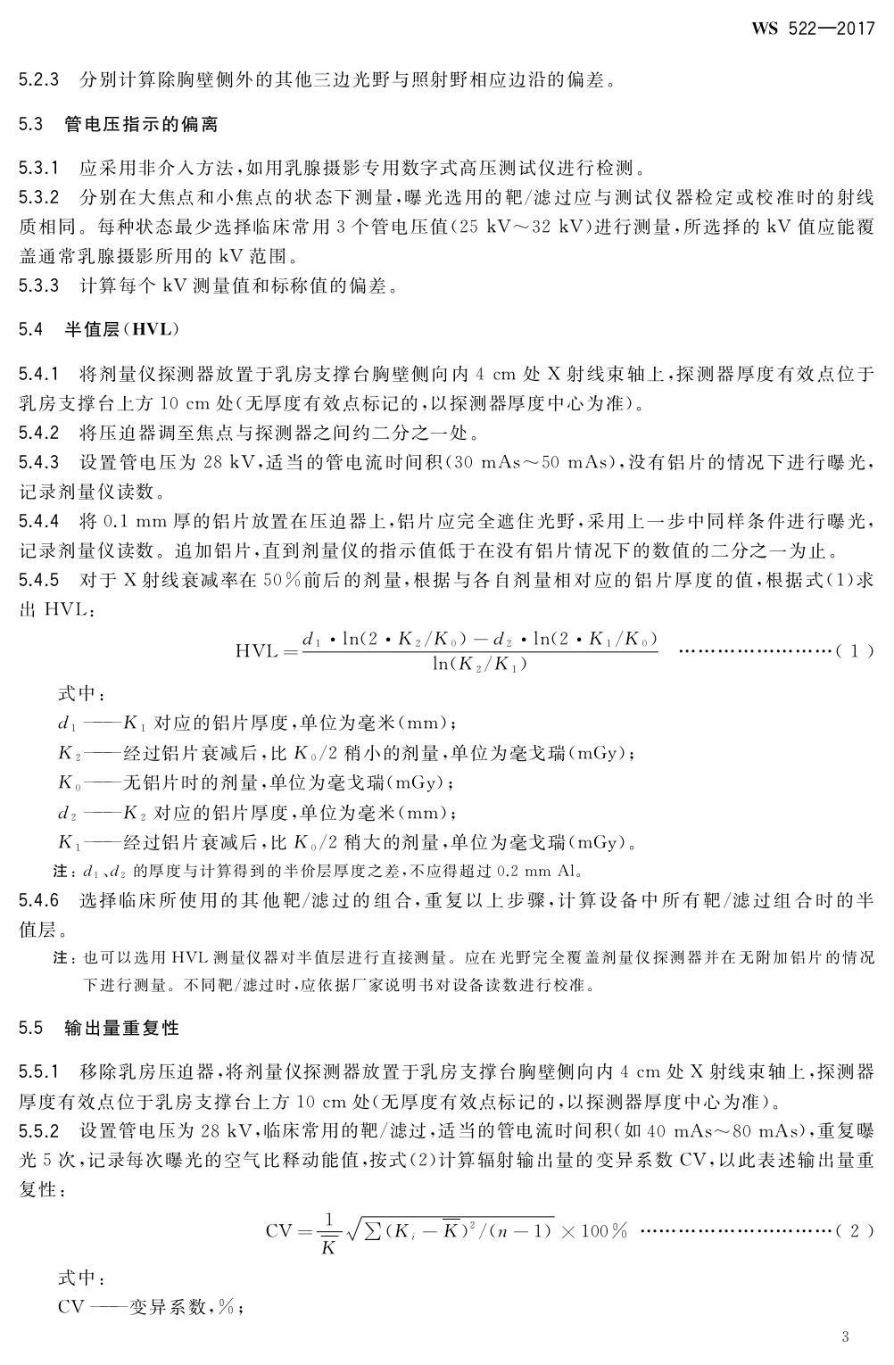 乳腺數(shù)字X射線攝影系統(tǒng)質(zhì)量控制檢測規(guī)范 WS 522-2017