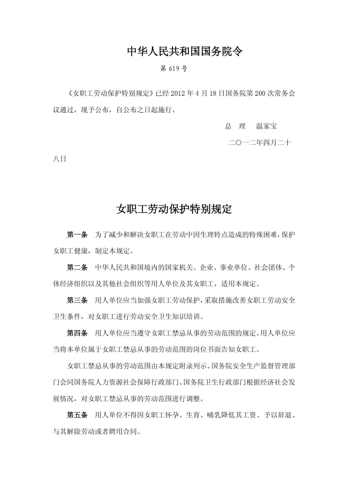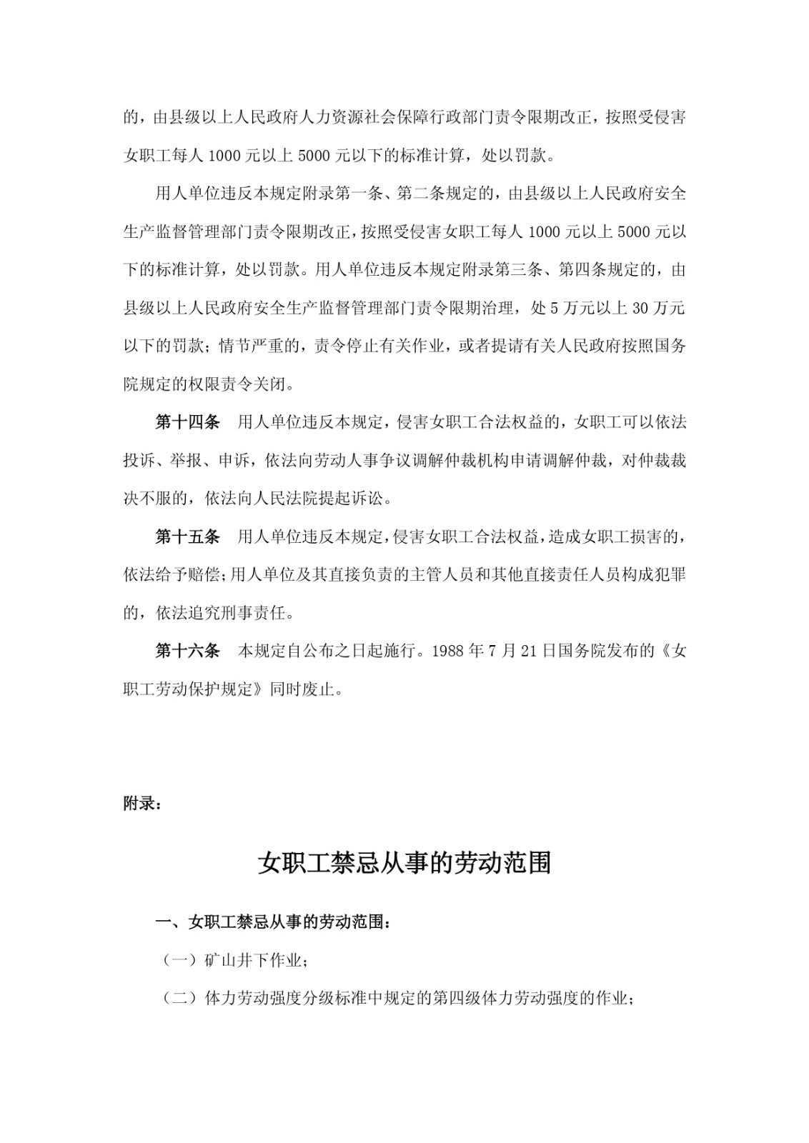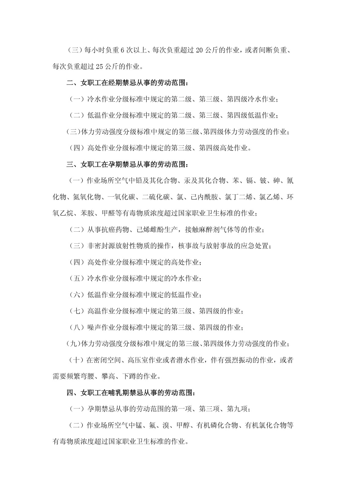 女職工勞動保護特別規(guī)定