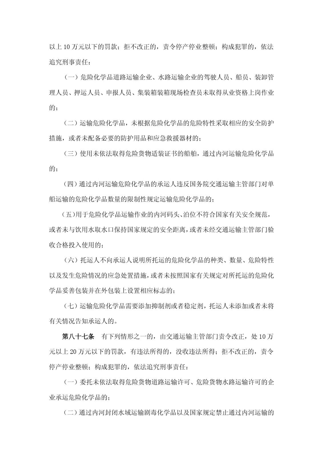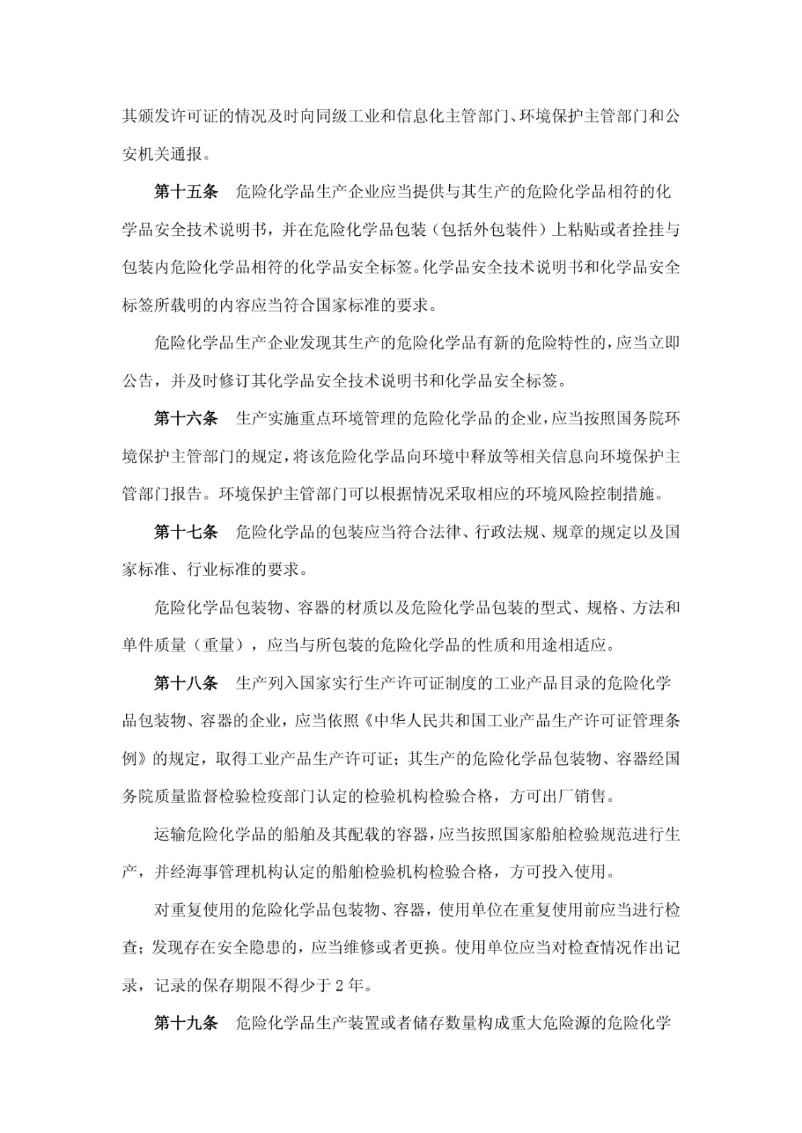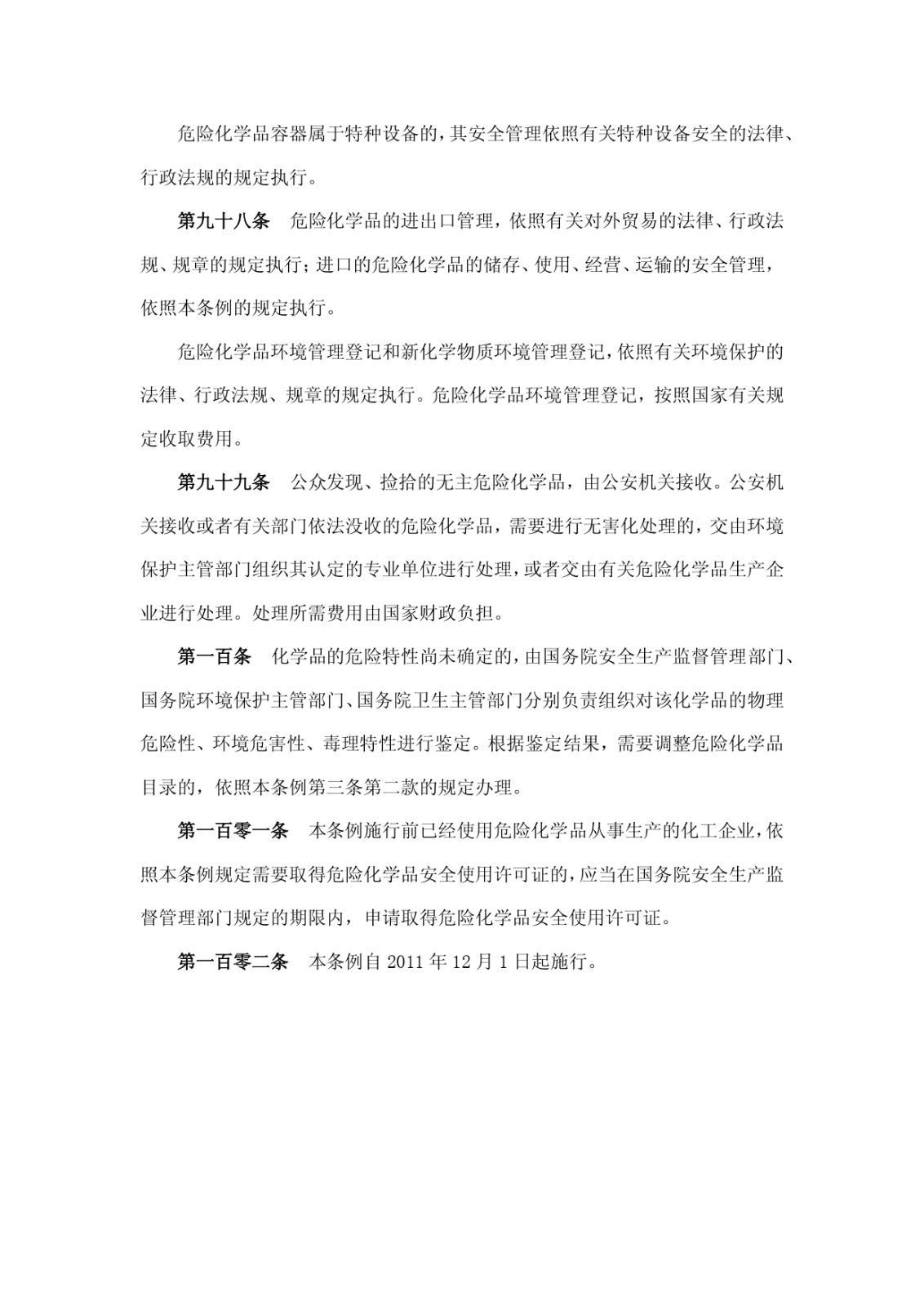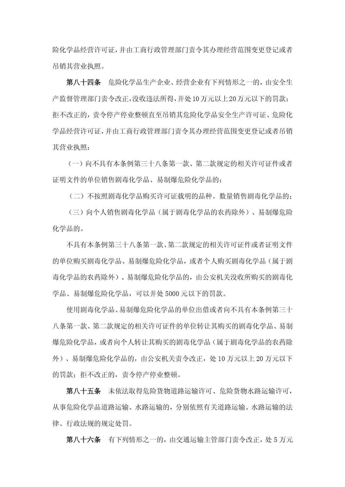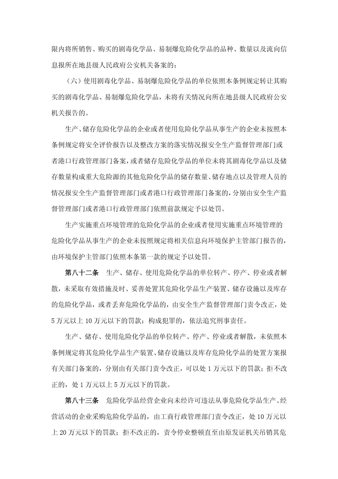 危險化學(xué)品安全管理條例